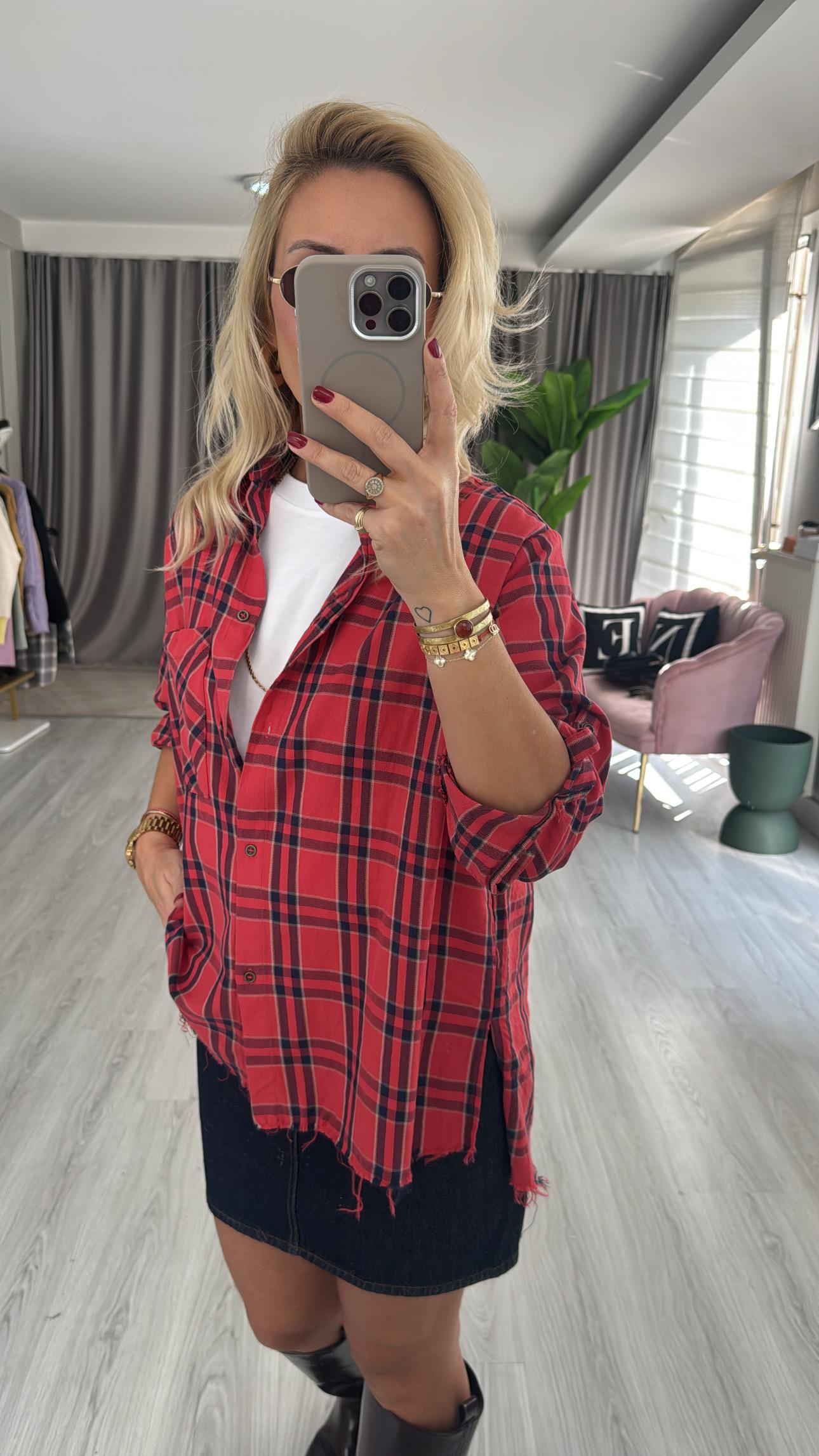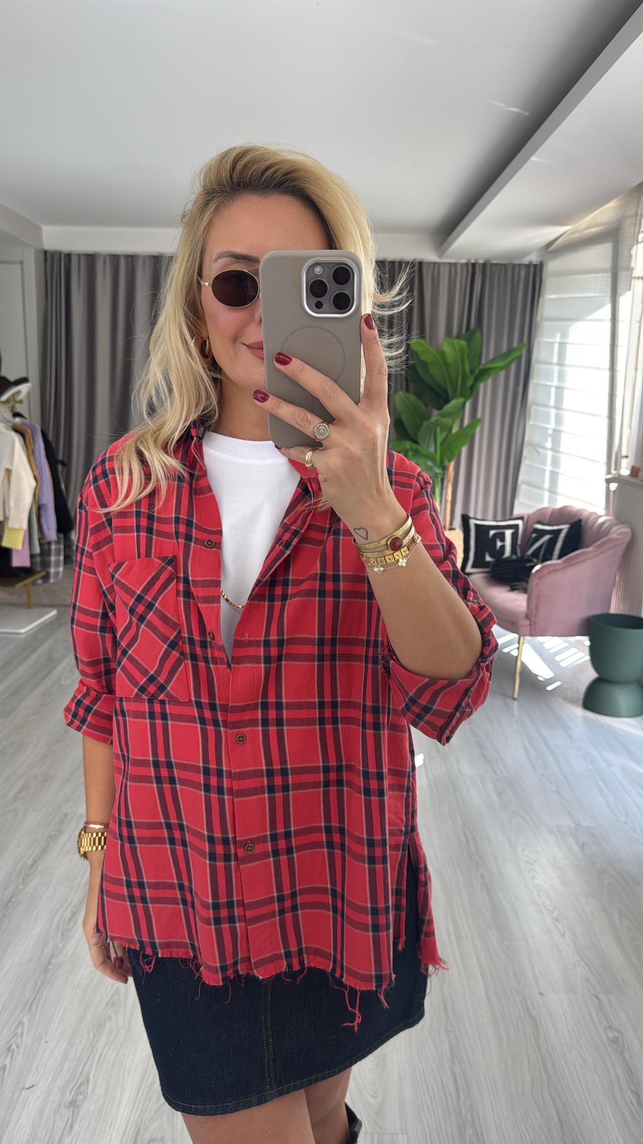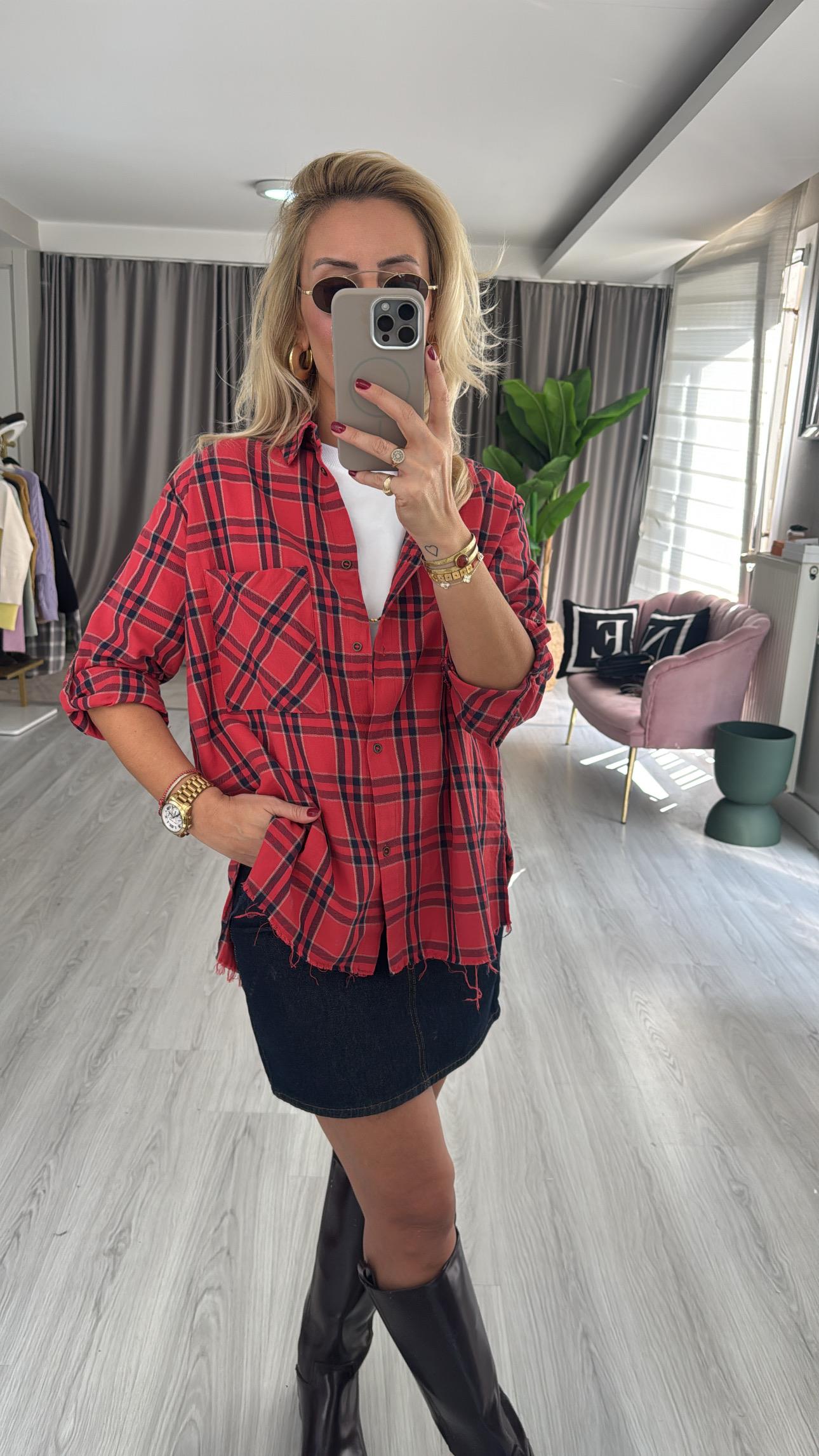 %100 Koton Kırmızı Ekoseli Gömlek