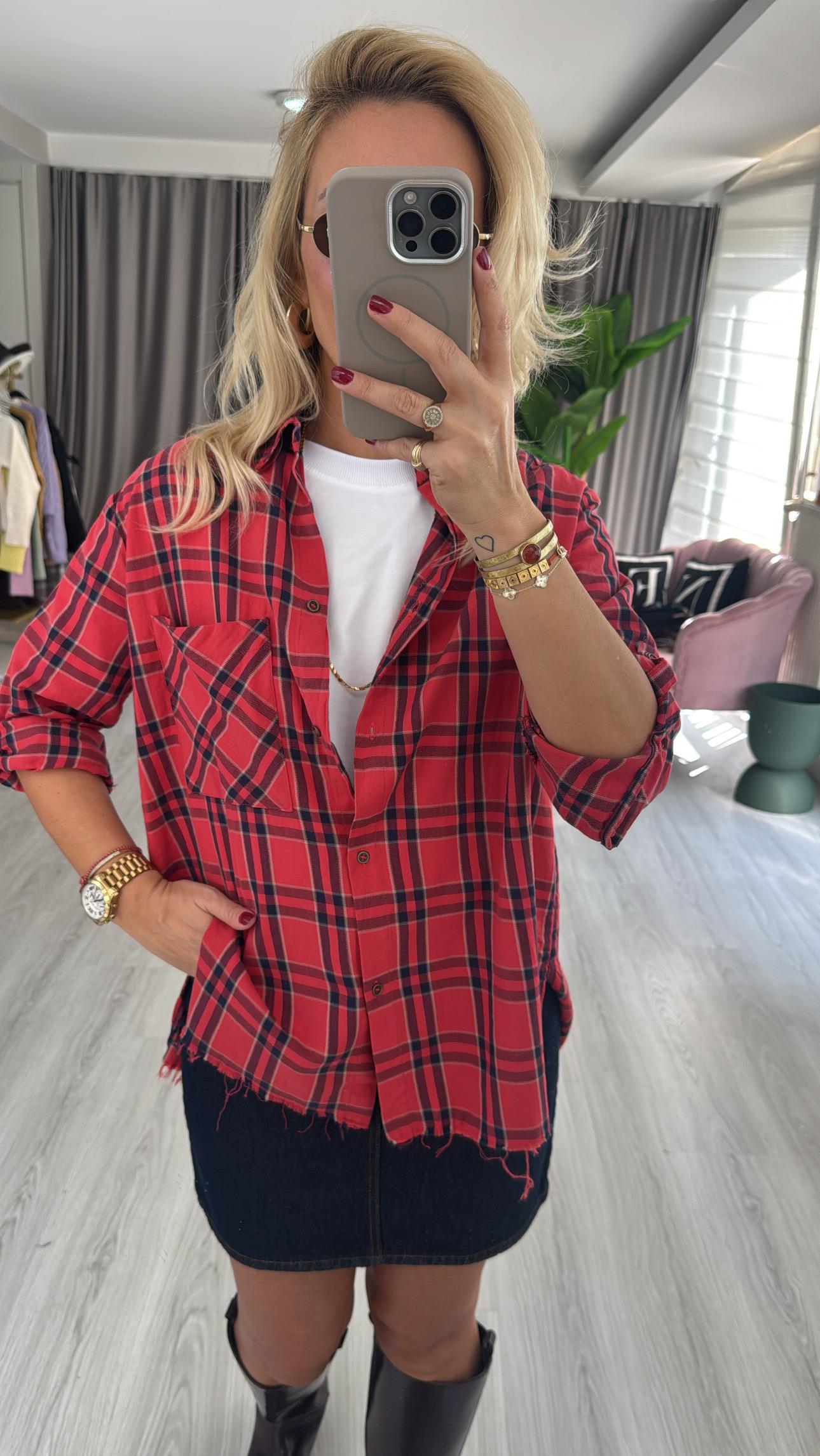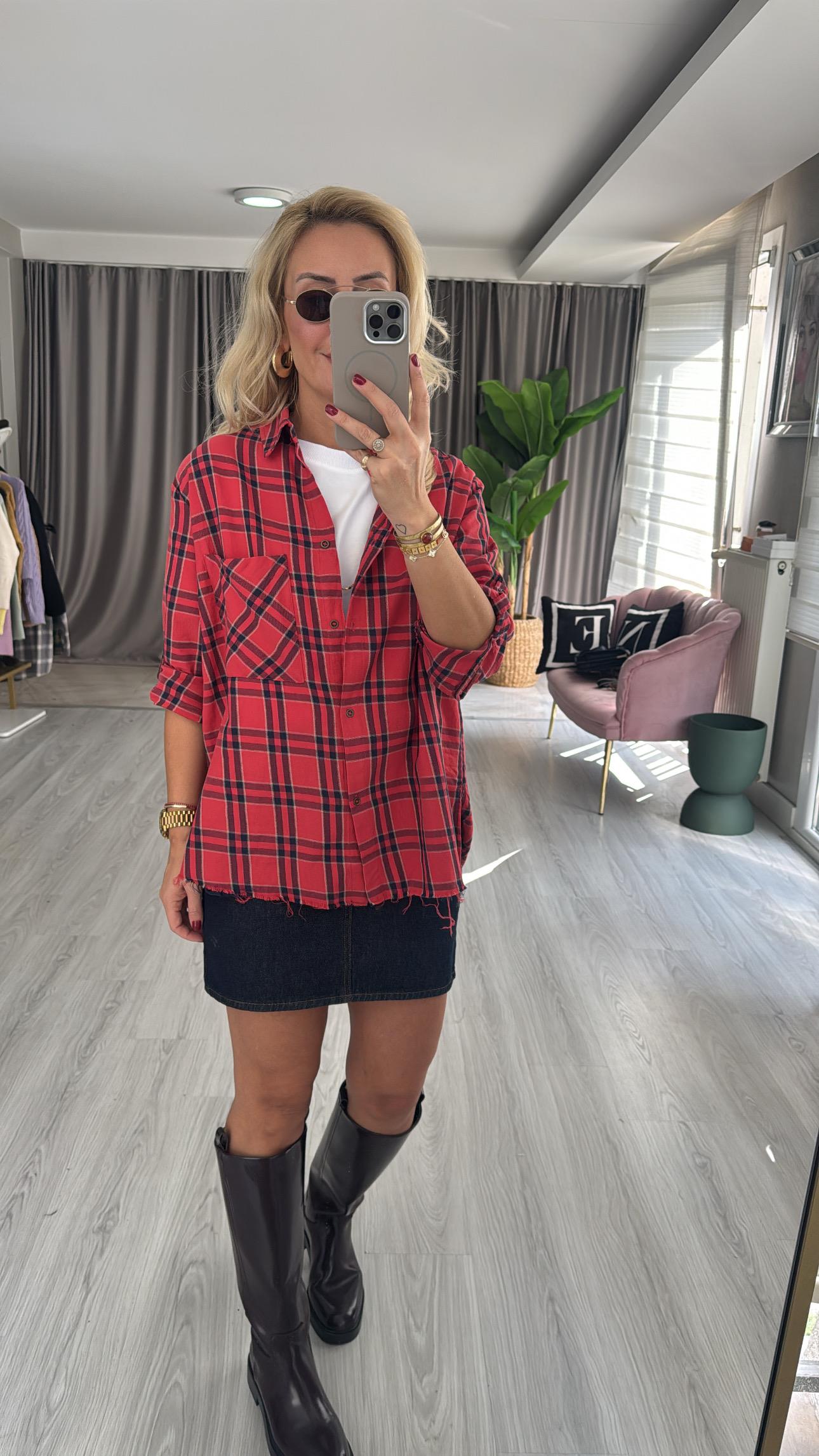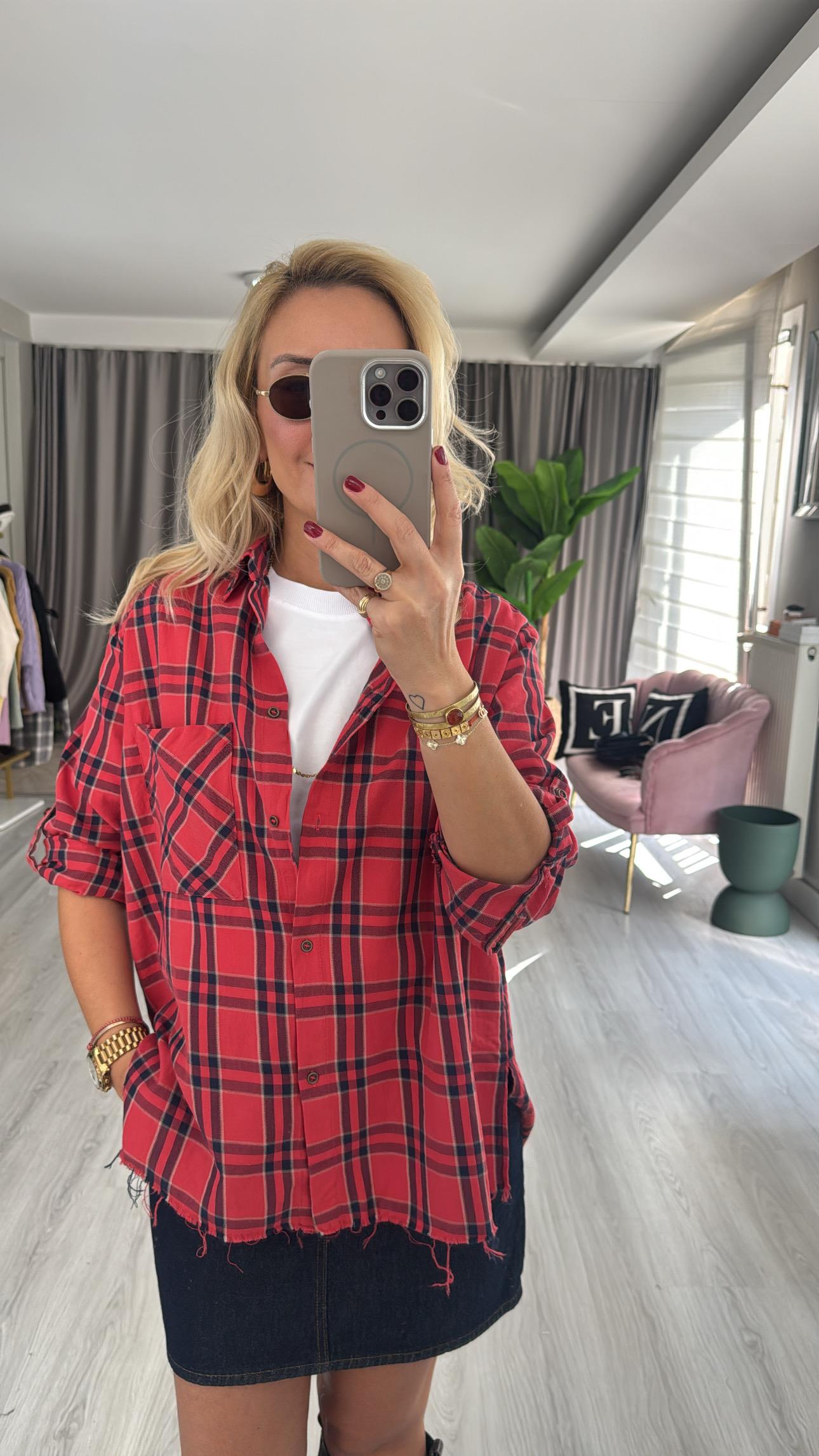 %100 Koton Kırmızı Ekoseli Gömlek
