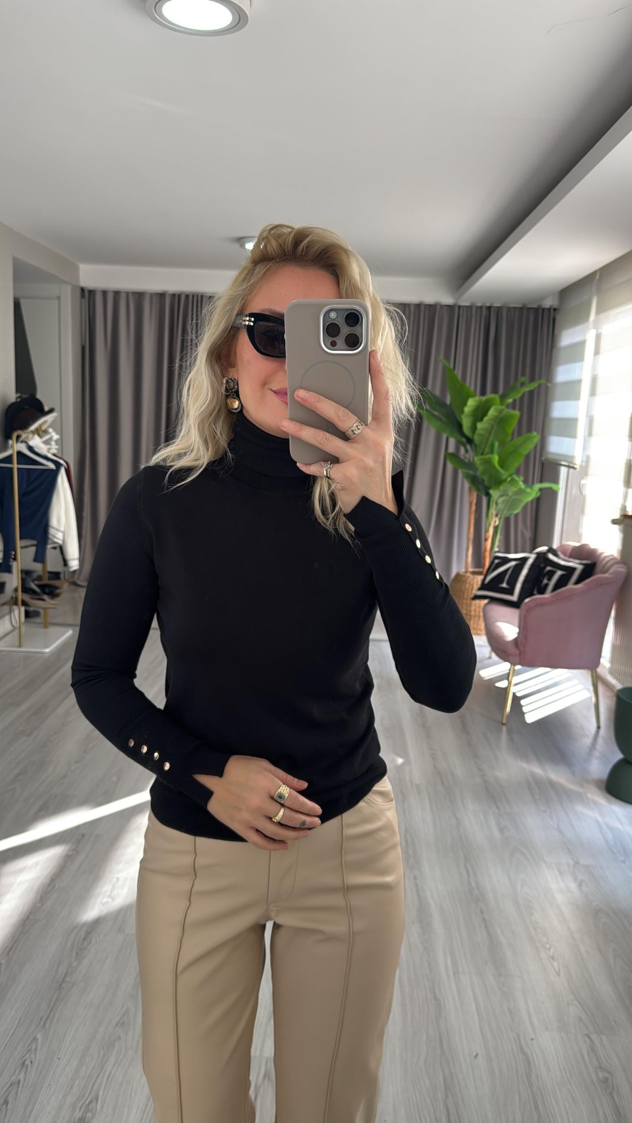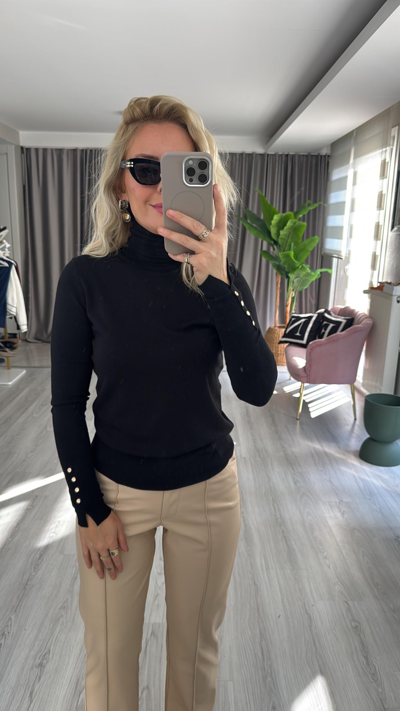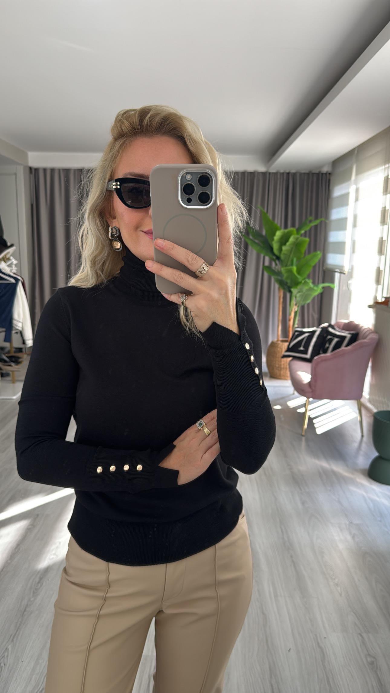 Balıkçı Yaka Kolu Droplu Siyah Dilvin Triko