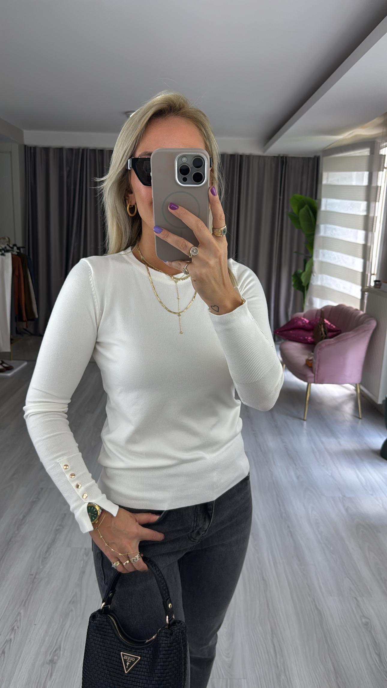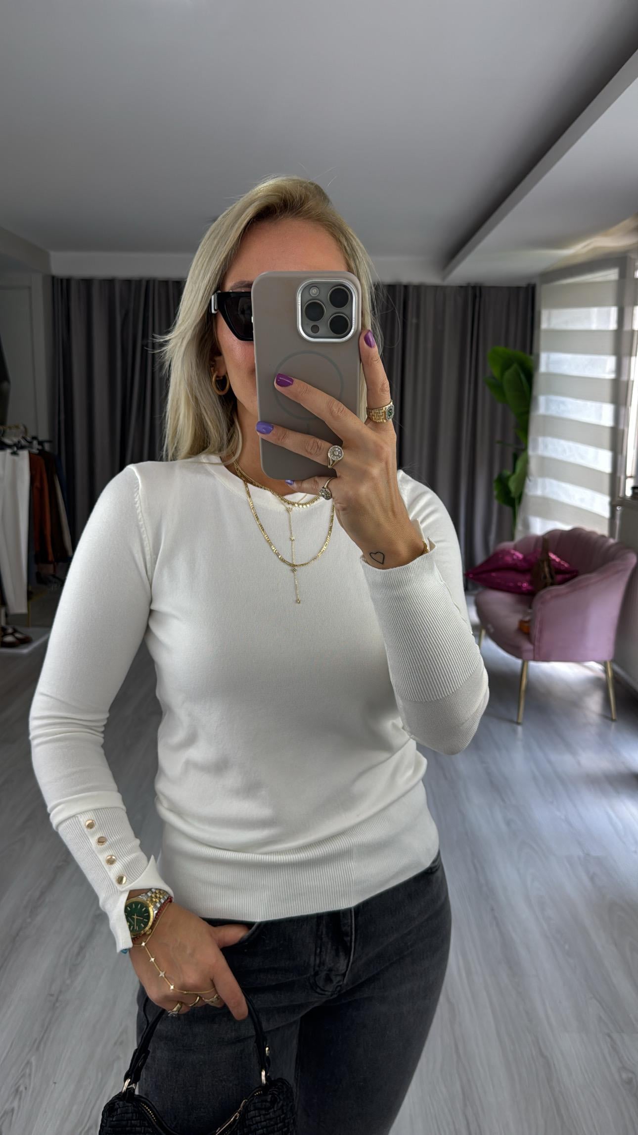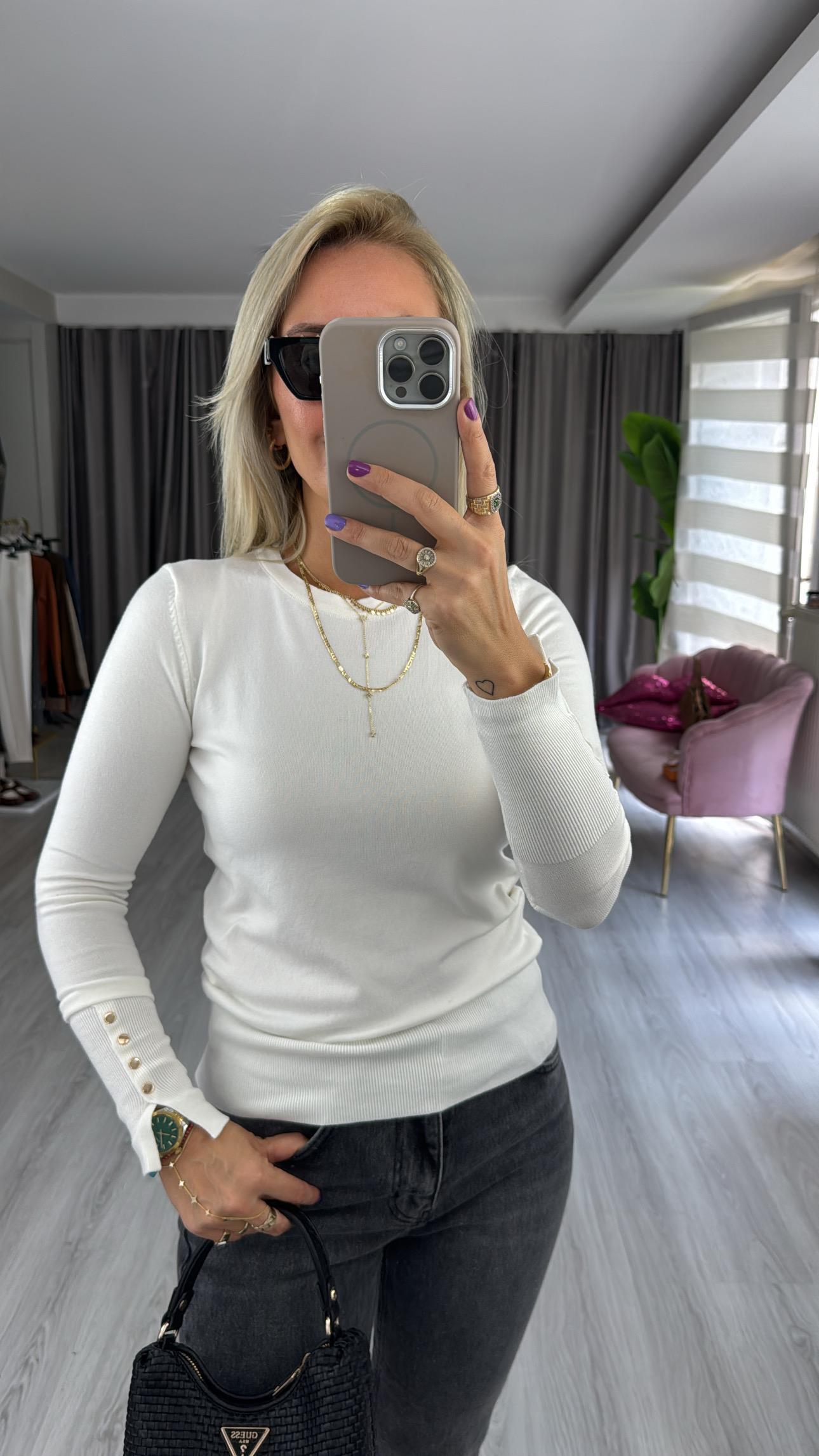 Bisiklet Yaka Kolu Droplu Uzun Kol Ekru Dilvin Triko