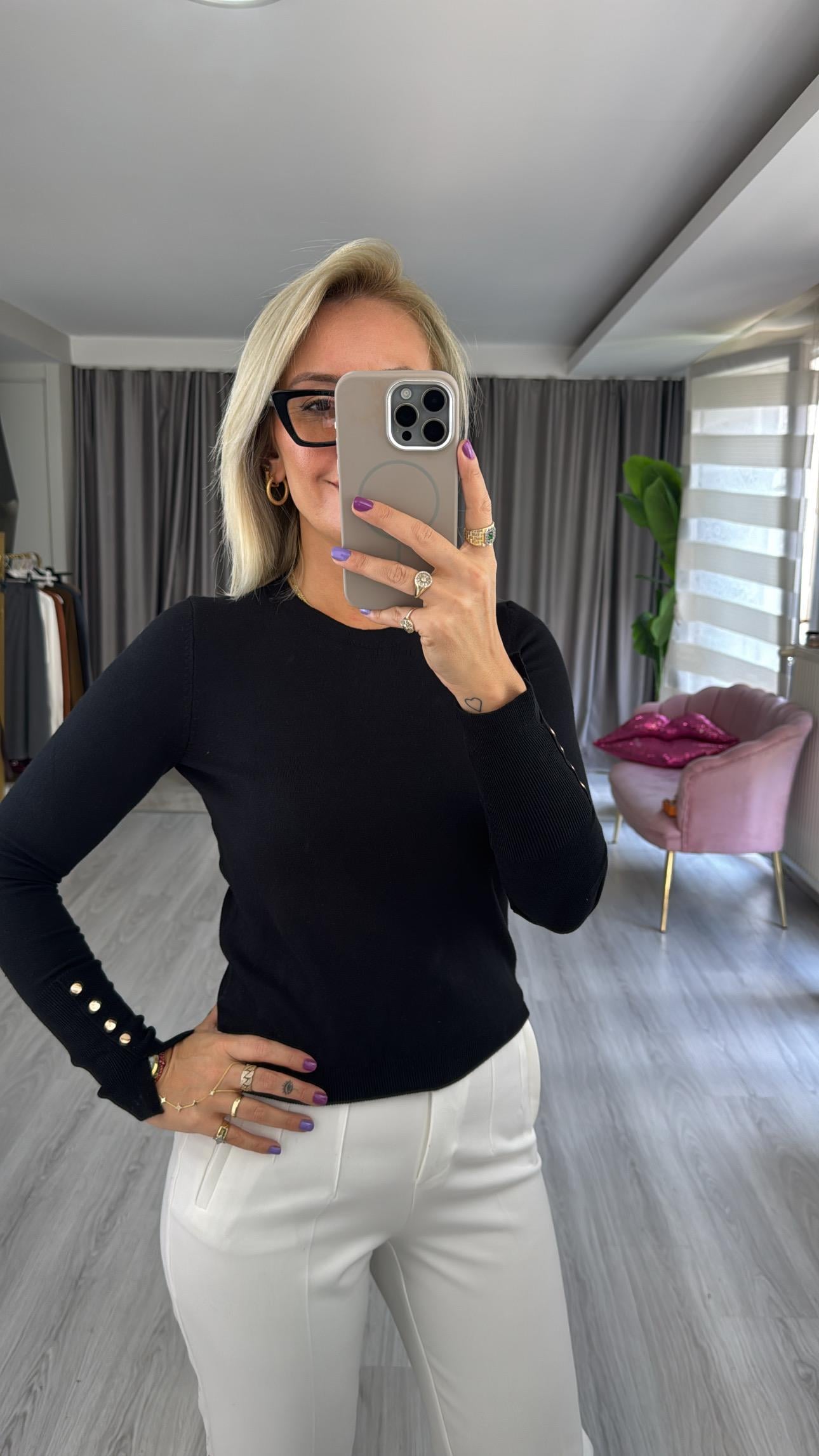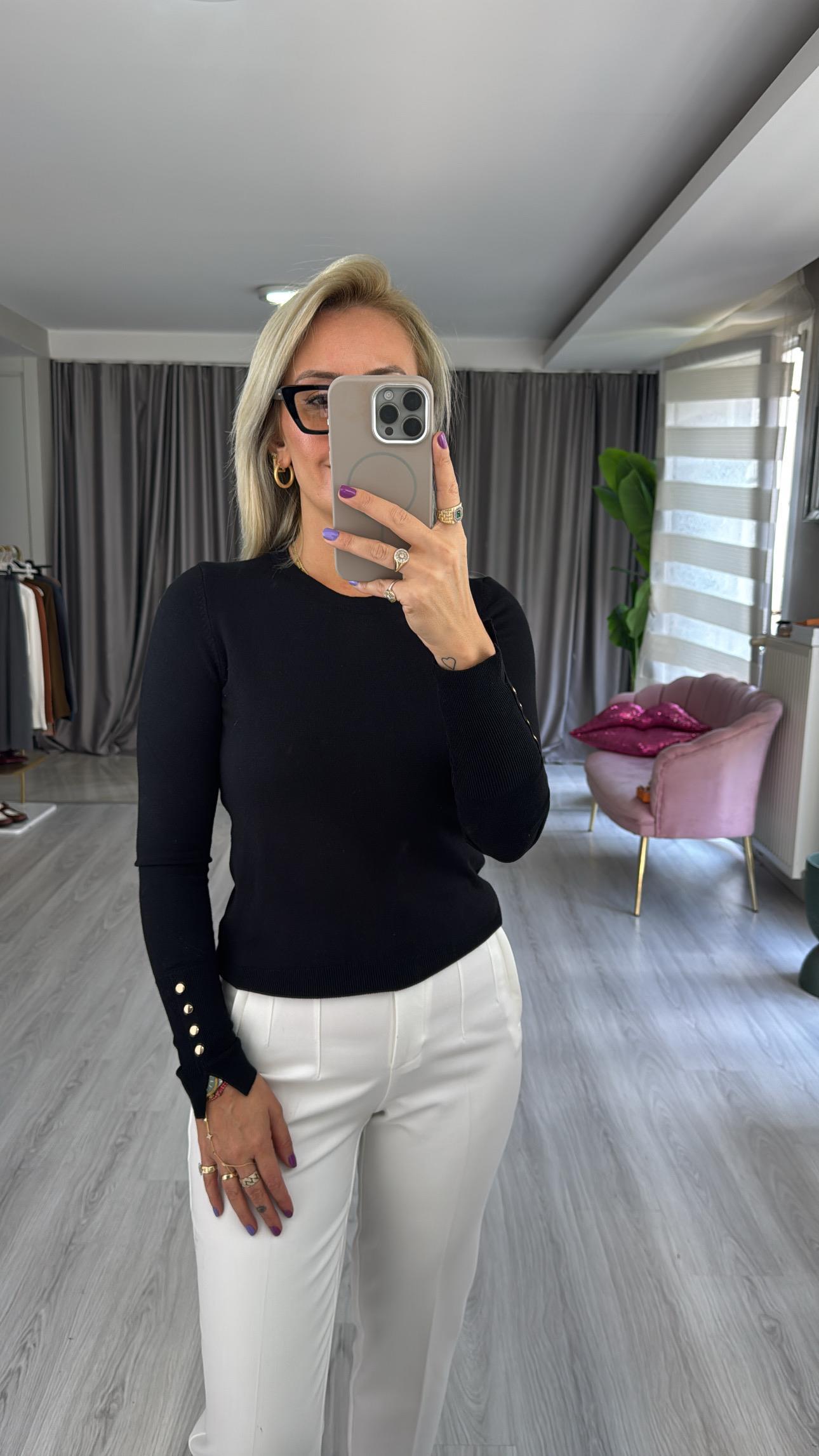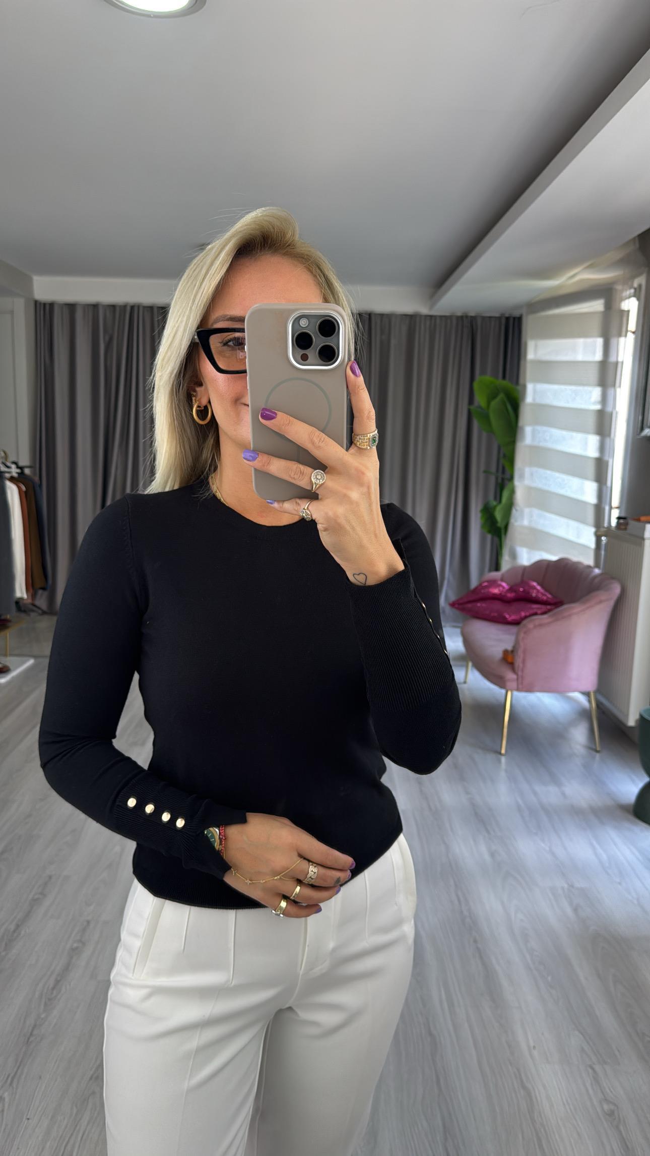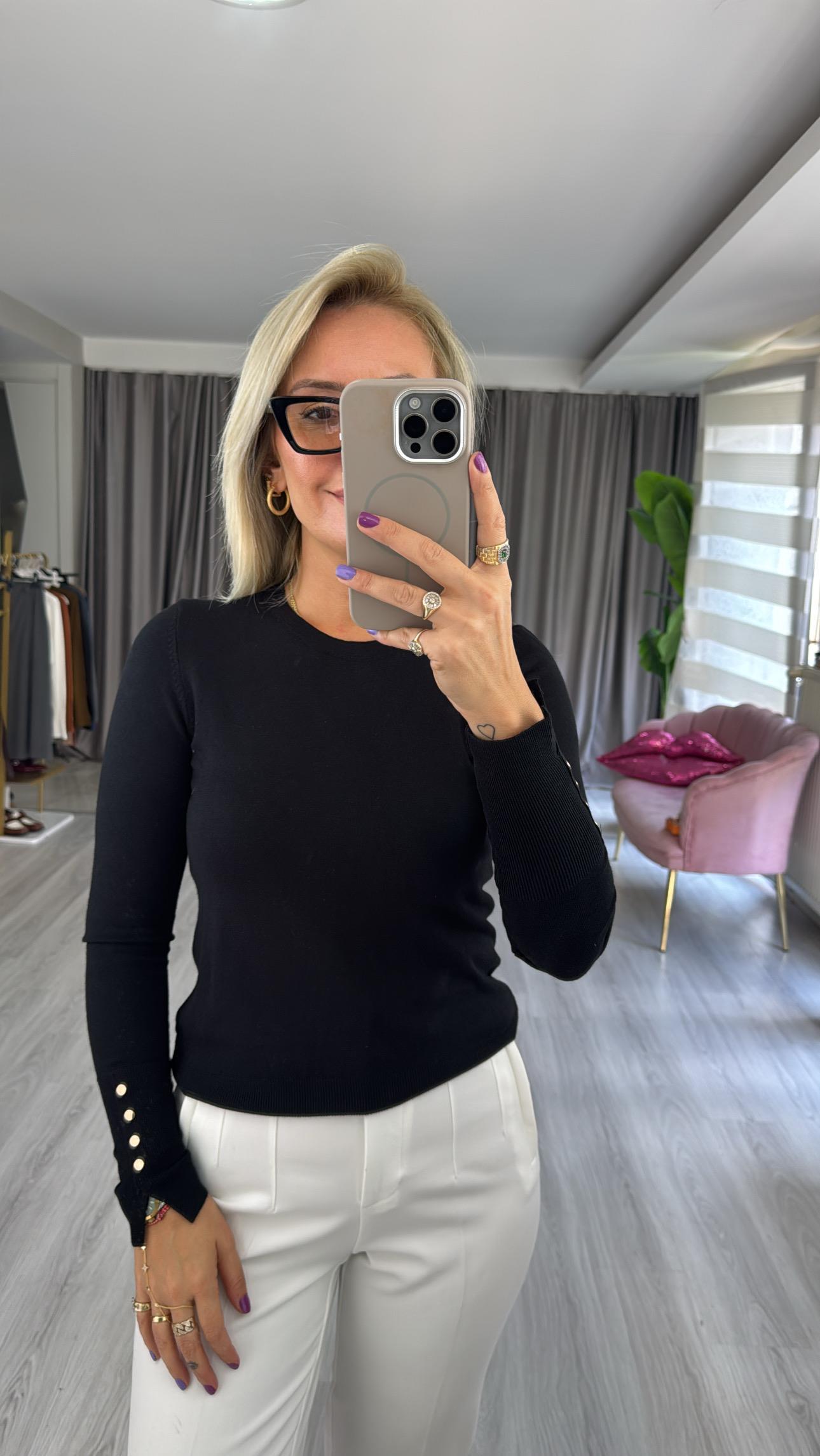 Bisiklet Yaka Kolu Droplu Uzun Kol Siyah Dilvin Triko