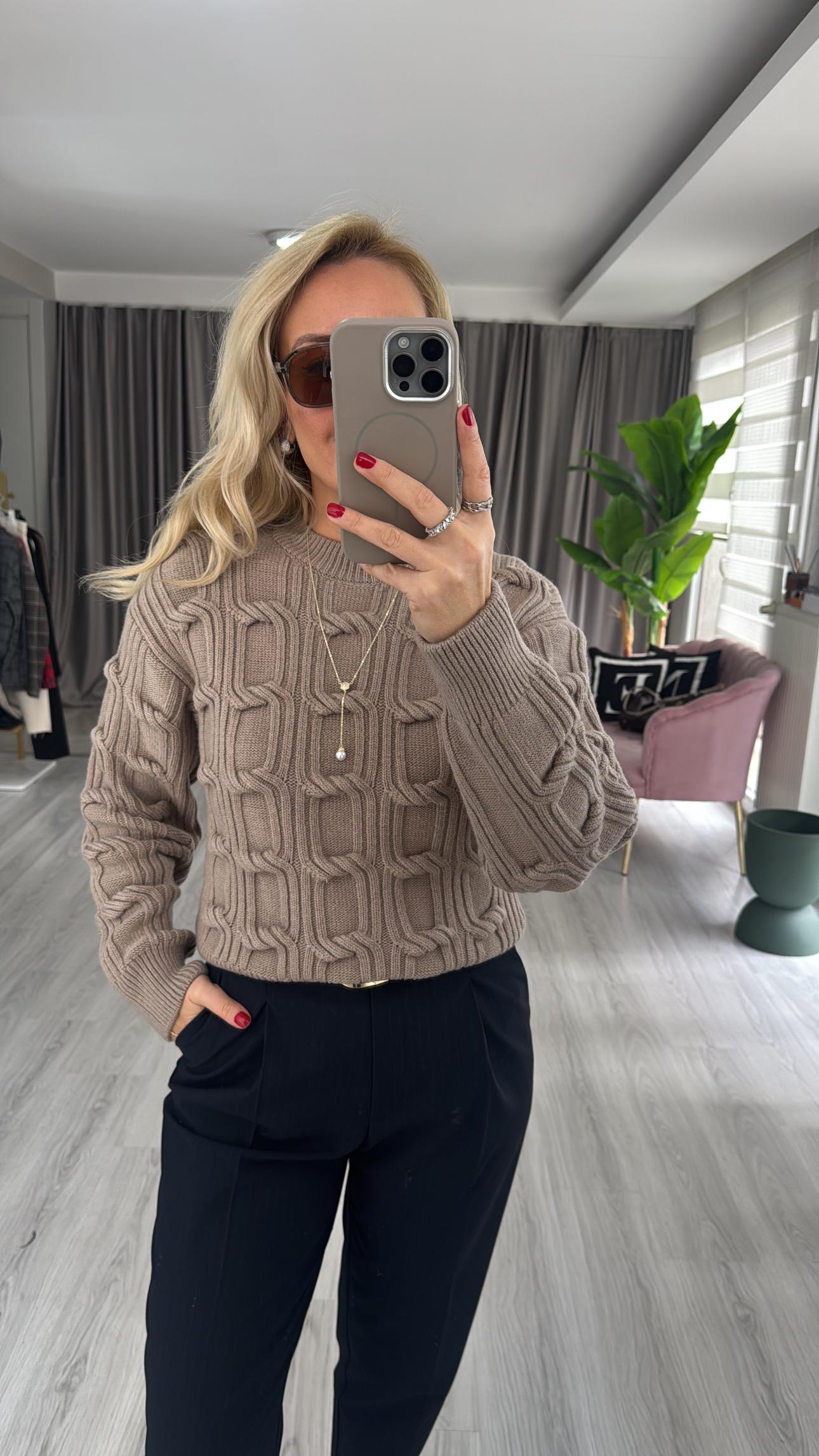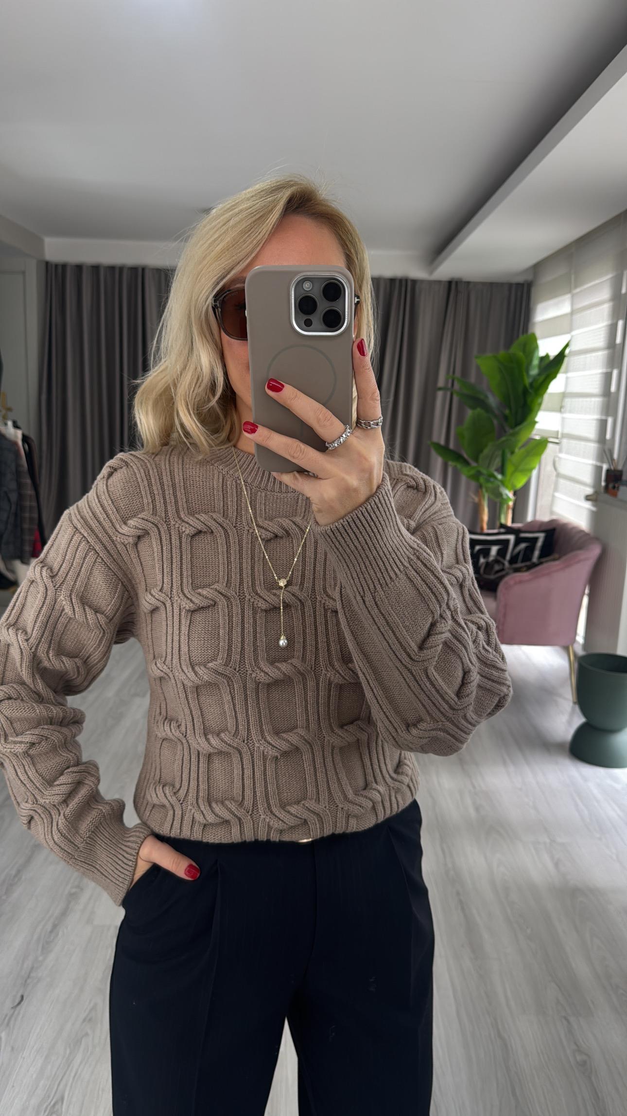 Kabartma Örgü Koyu Vizon Triko