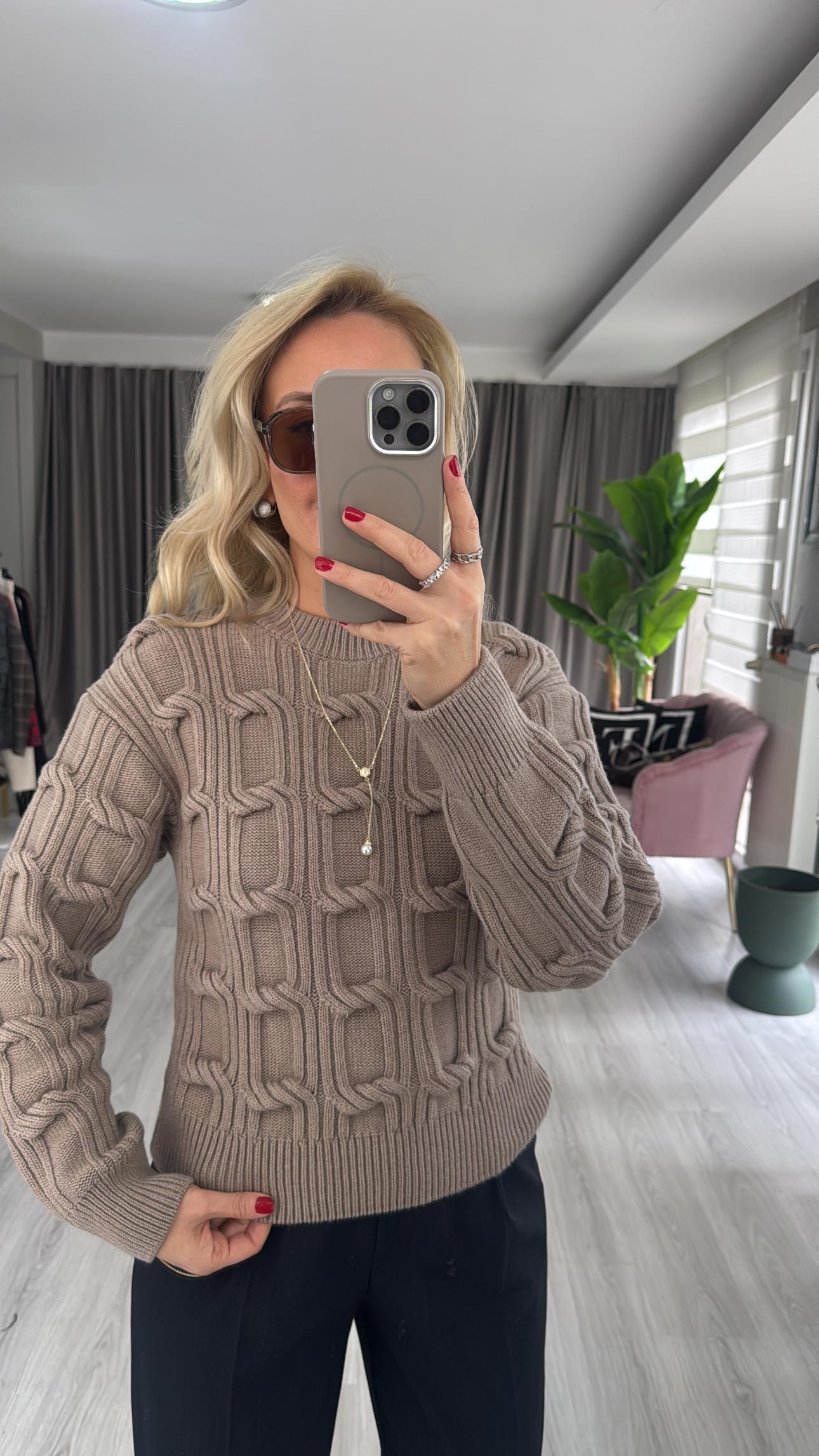 Kabartma Örgü Dilvin Koyu Vizon Triko