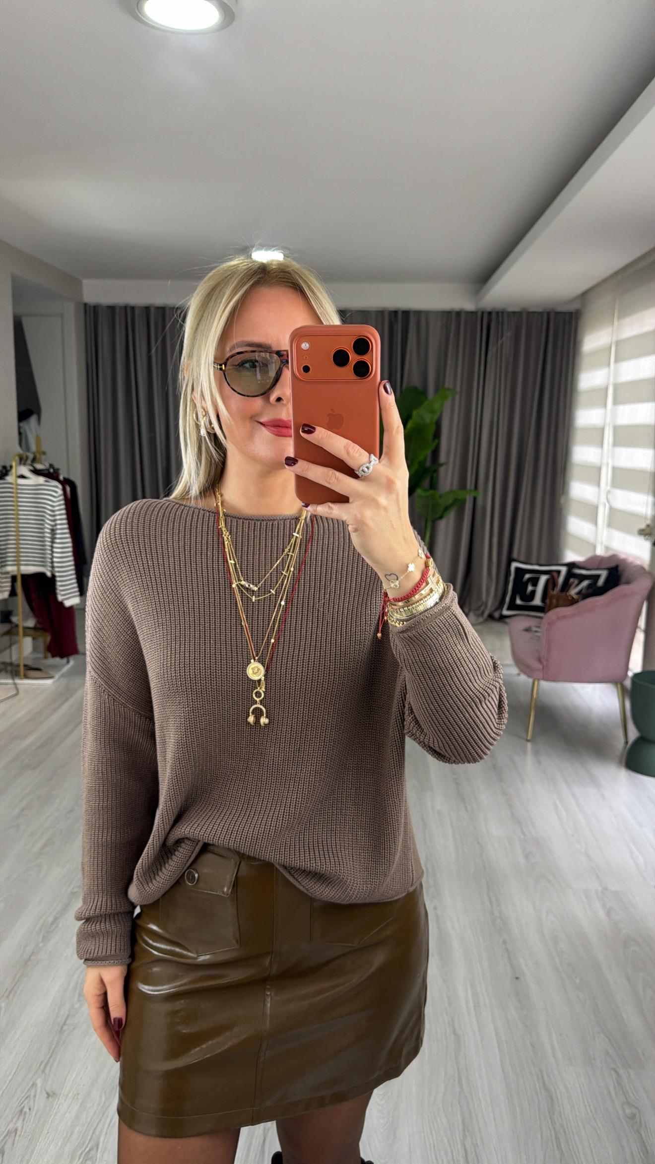 Kayık Yaka Vizon Merserize Triko