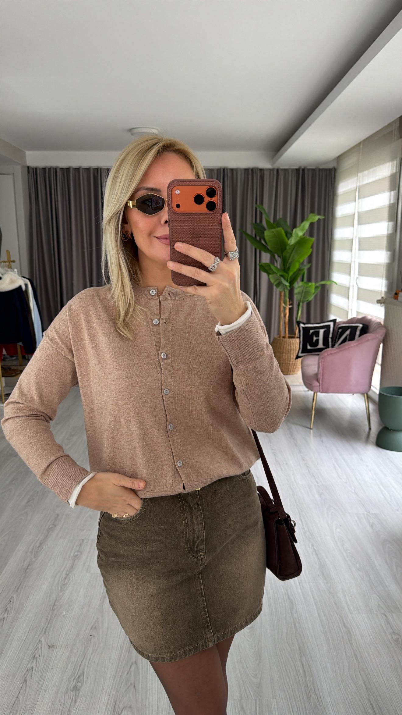 Kolu Ucu Ekru Bisiklet Yaka Camel Triko
