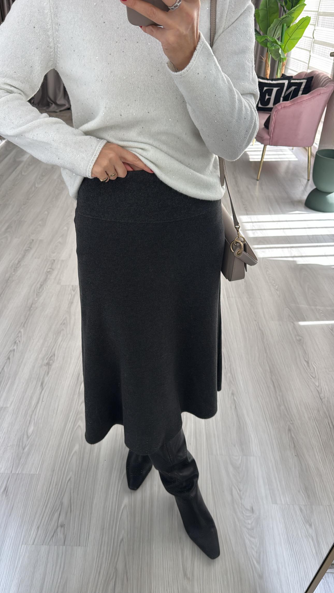 Midi Boy Antrasit Dilvin Triko Etek