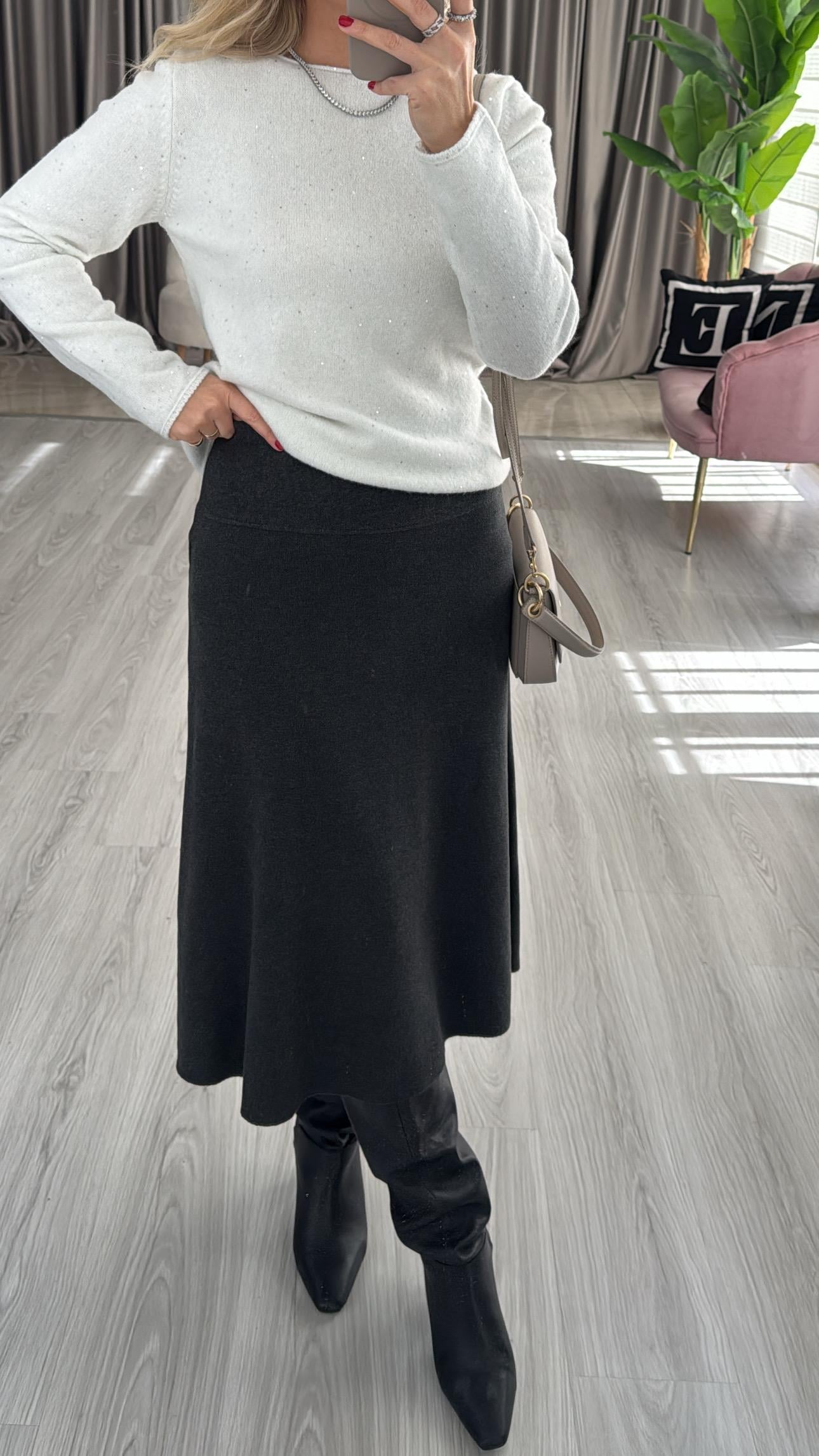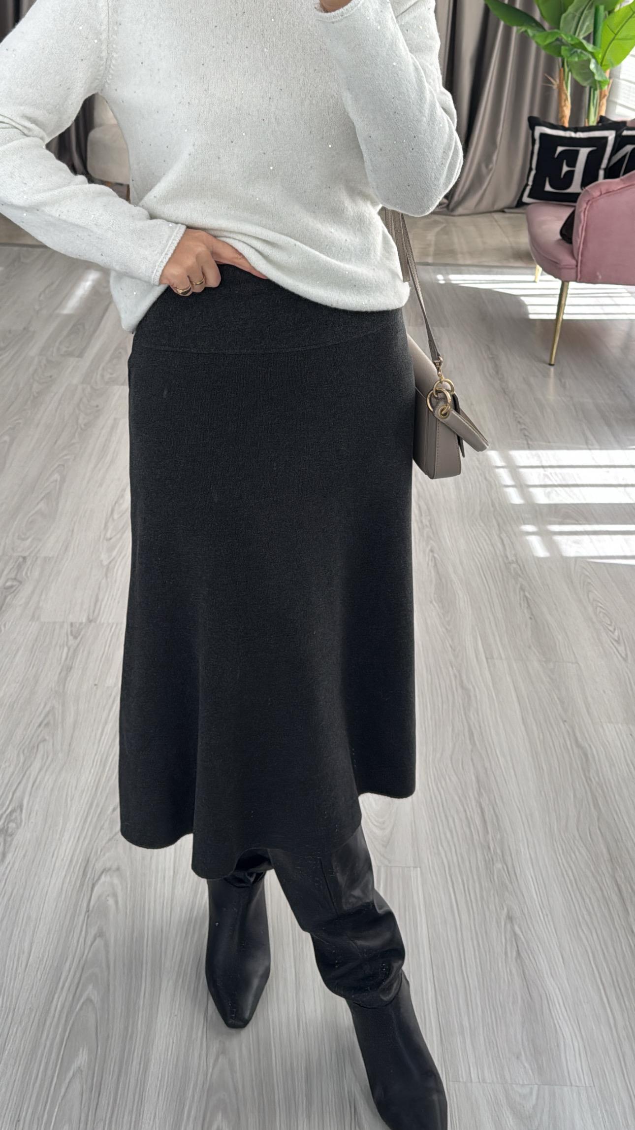 Midi Boy Siyah Dilvin Triko Etek