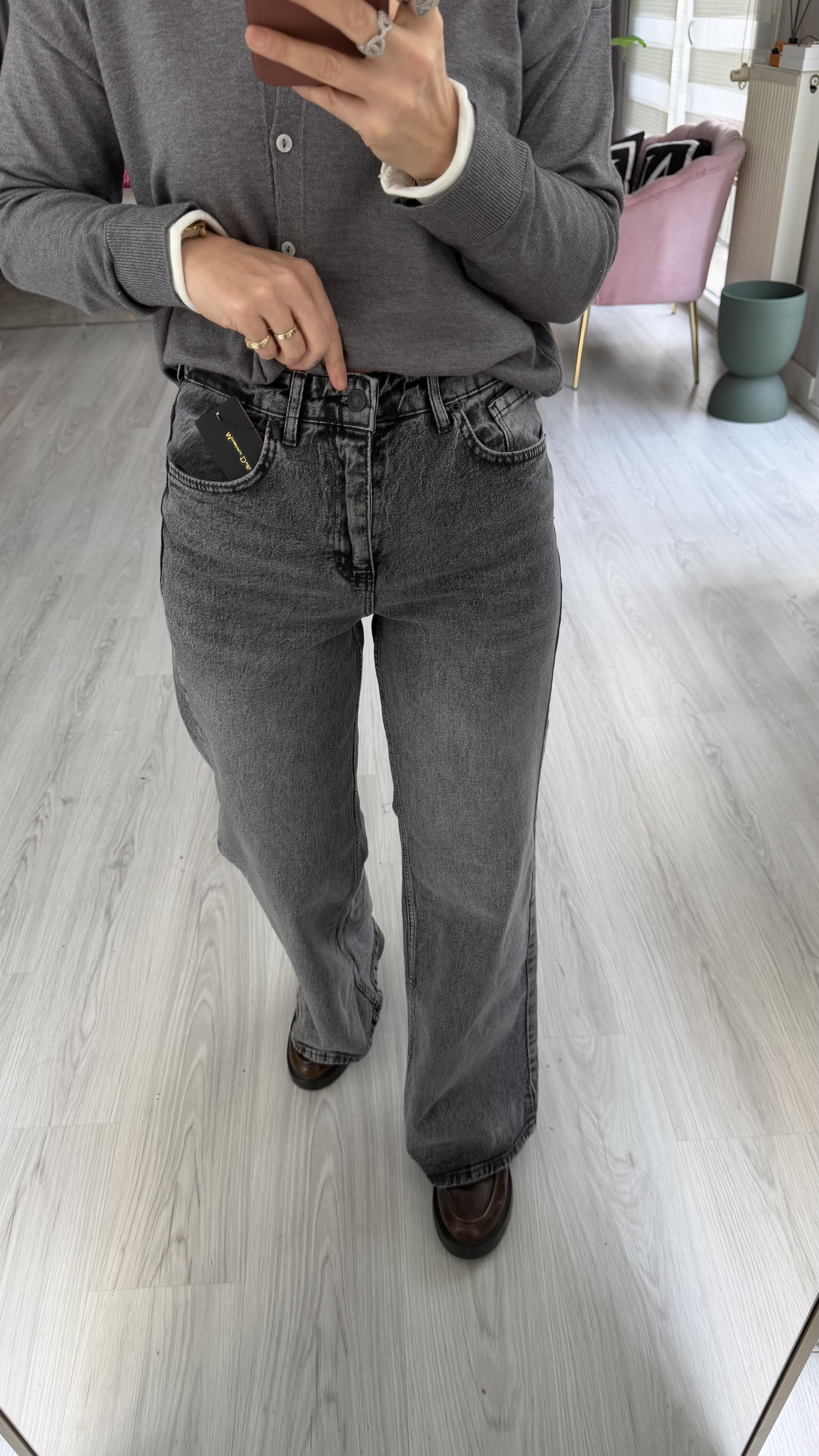 Orijinal Marka Full Likralı Füme Taşlamalı Palazzo Jean