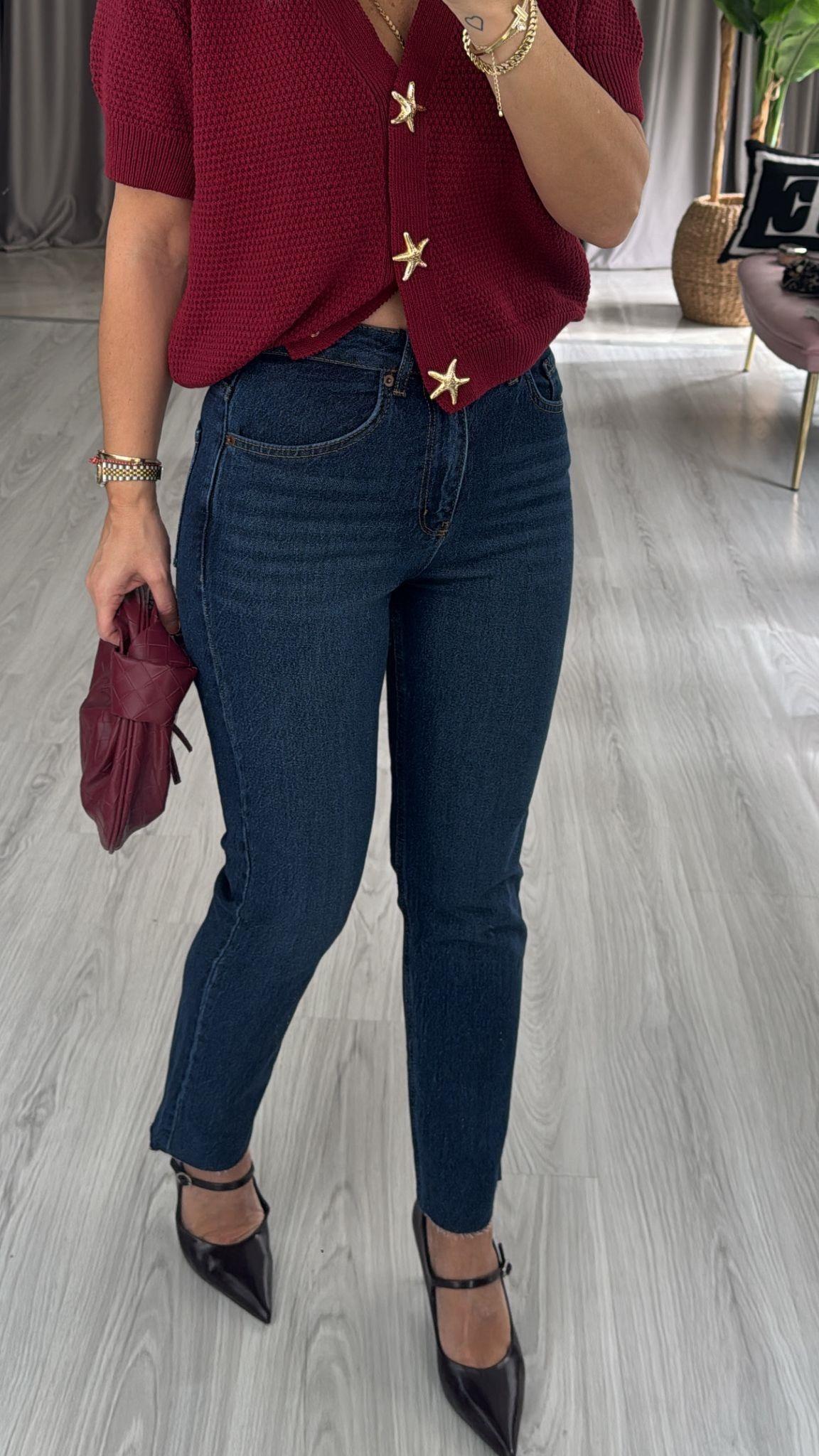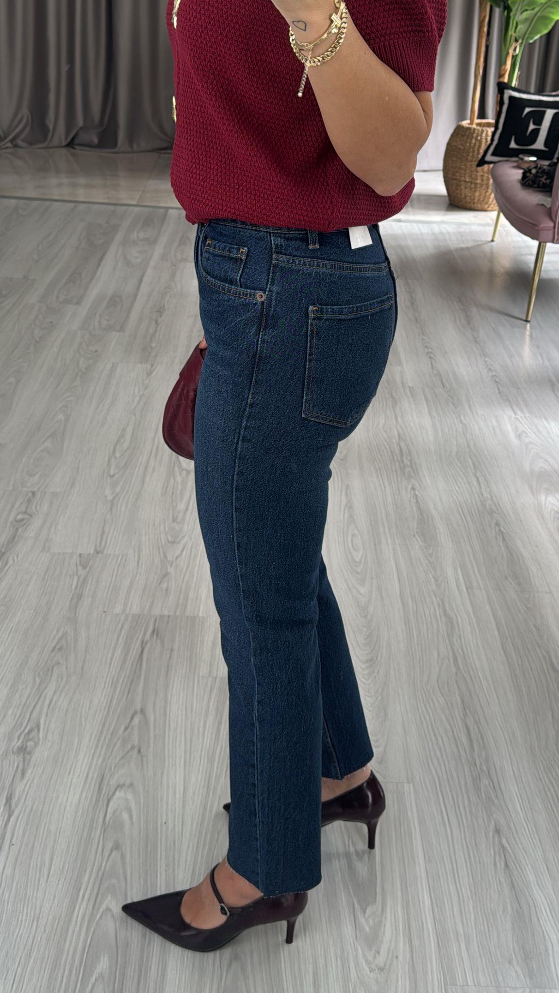Orijinal Marka Taşlamalı Lacivert Boyfit Jean