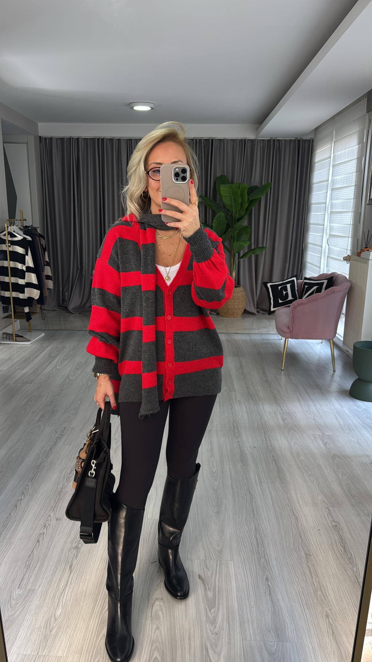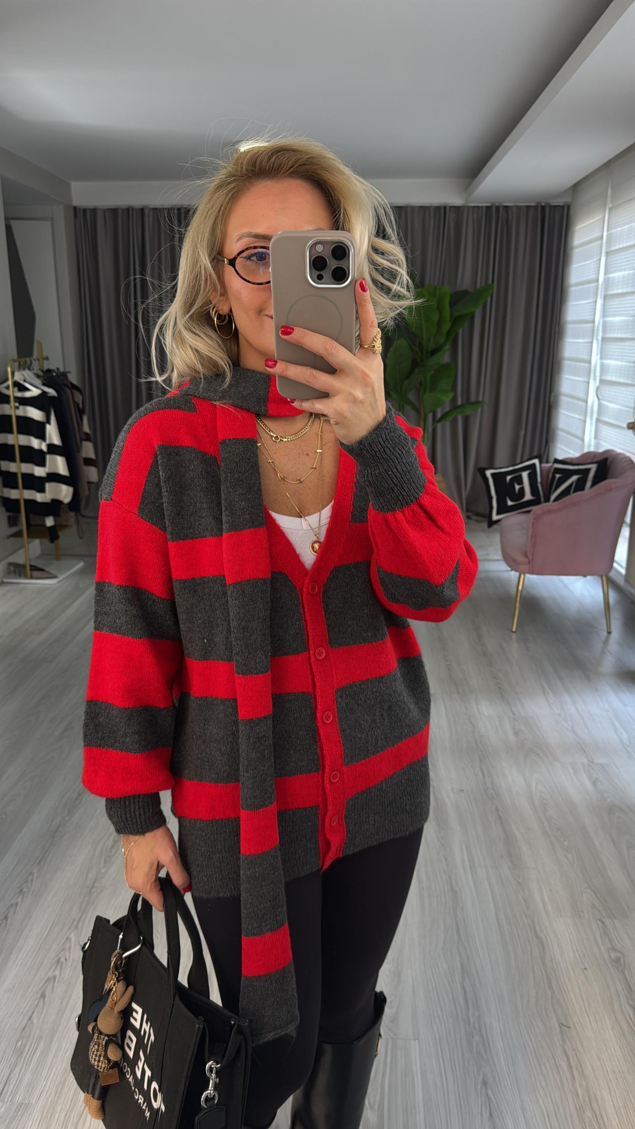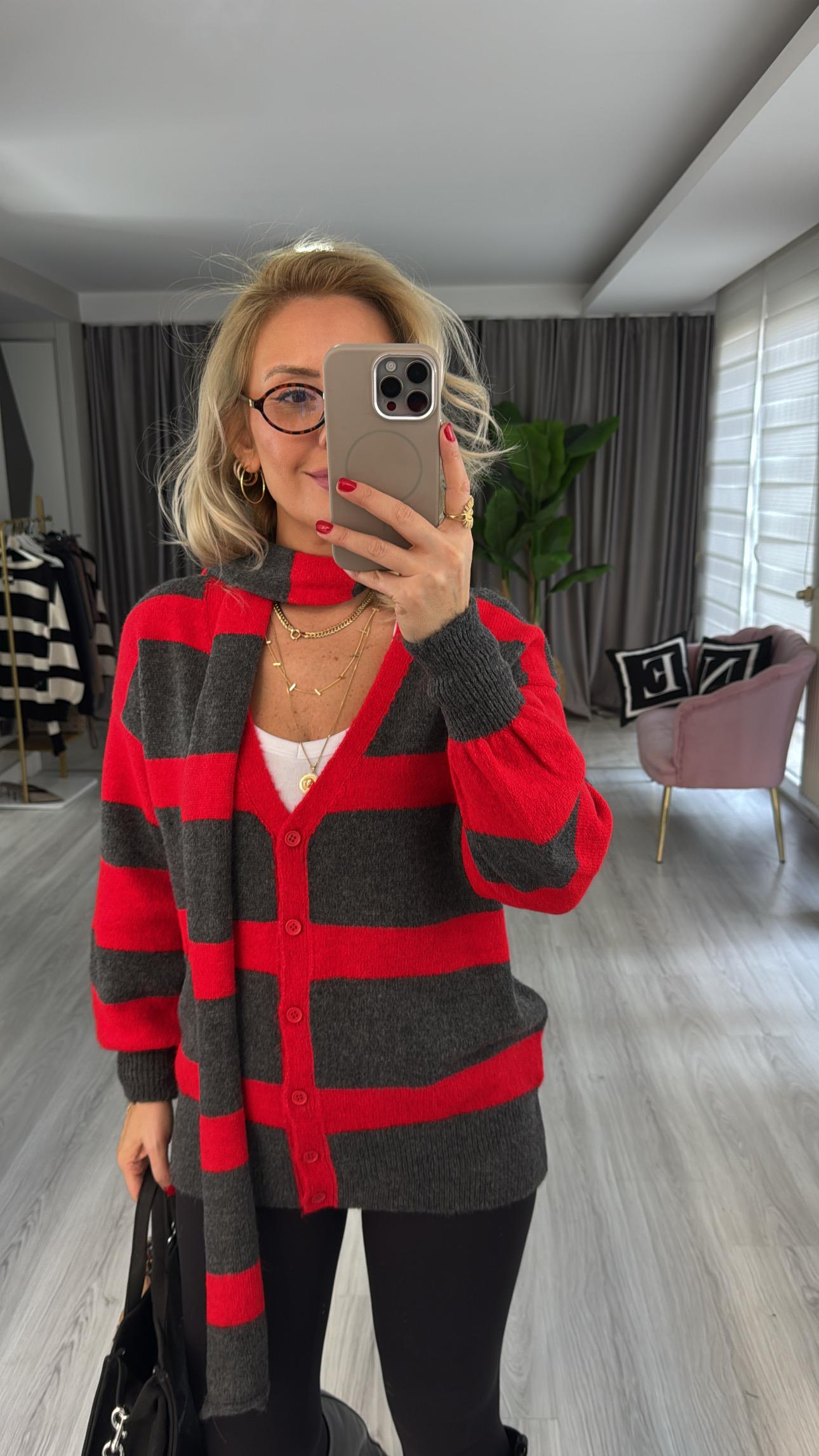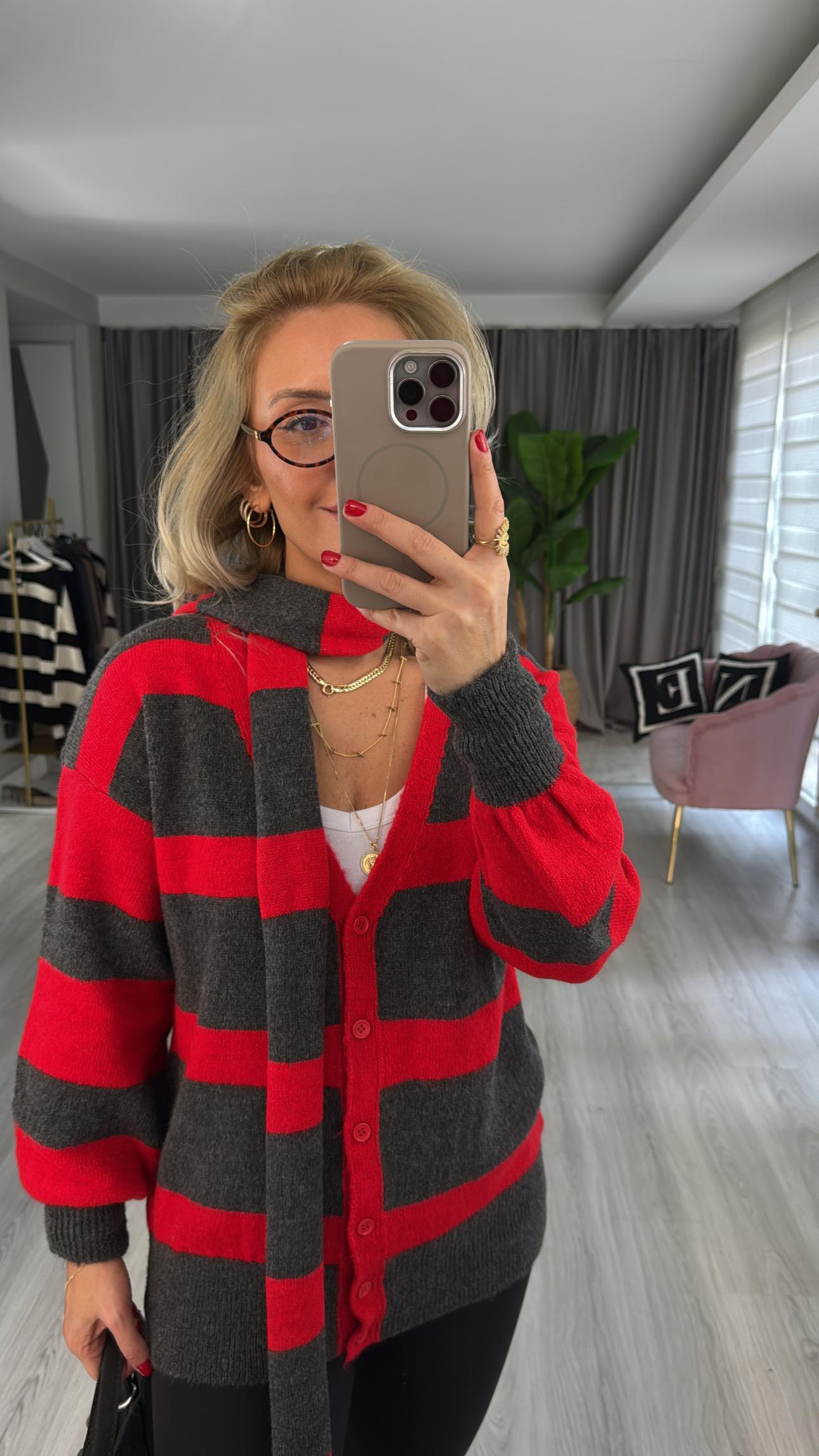 Orijinal Model Atkılı Kırmızı Antrasit Triko