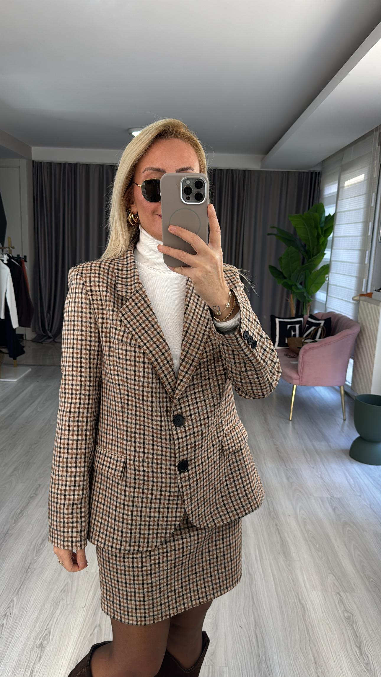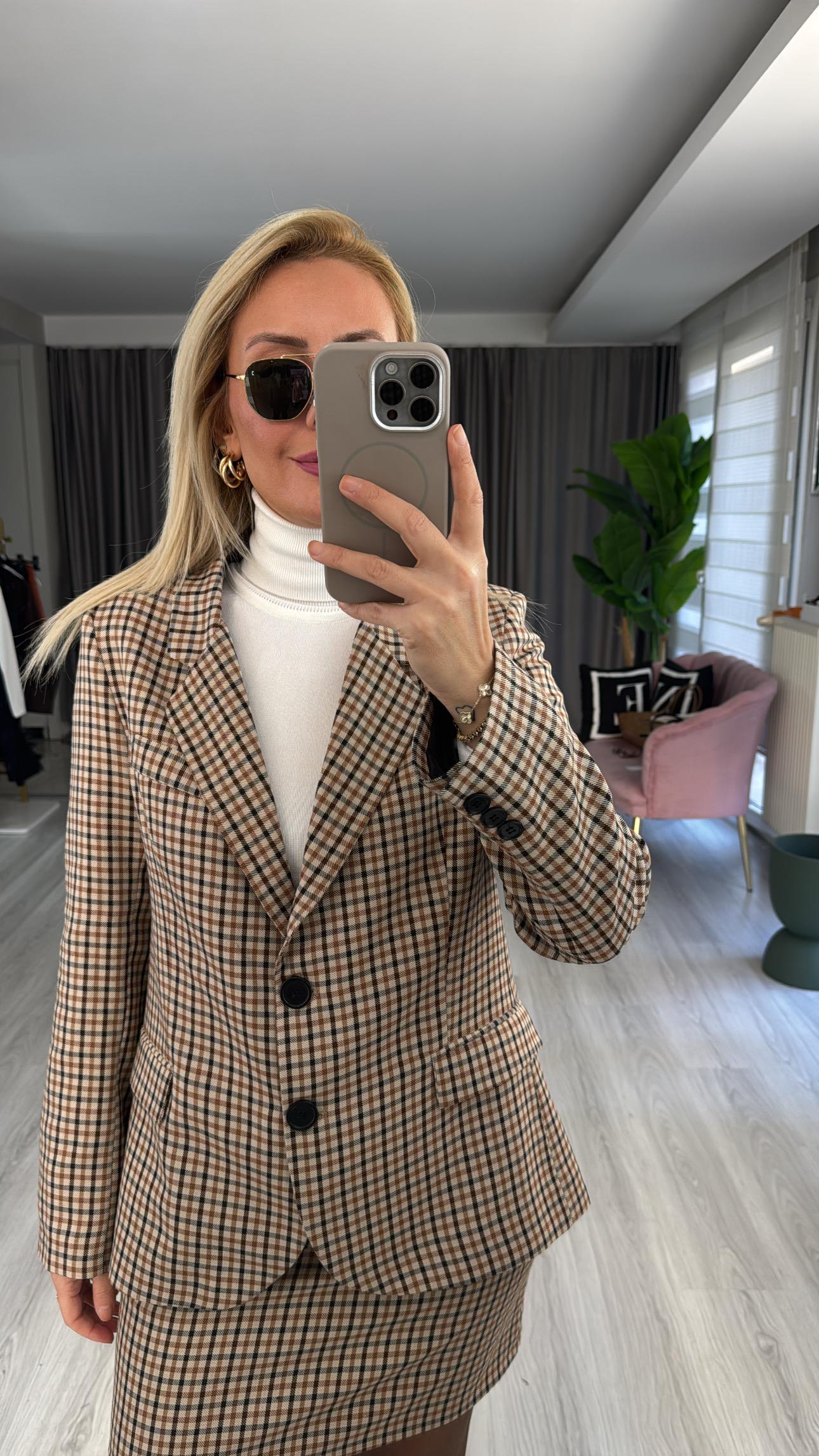 Orijinal Model Bordo Kahve Ekoseli Blazer Ceket