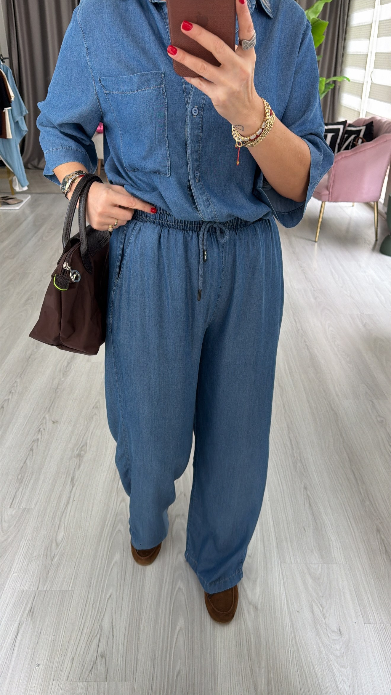 Premium Pamuk Tencel Gömlek Pantolon Mavi Takım
