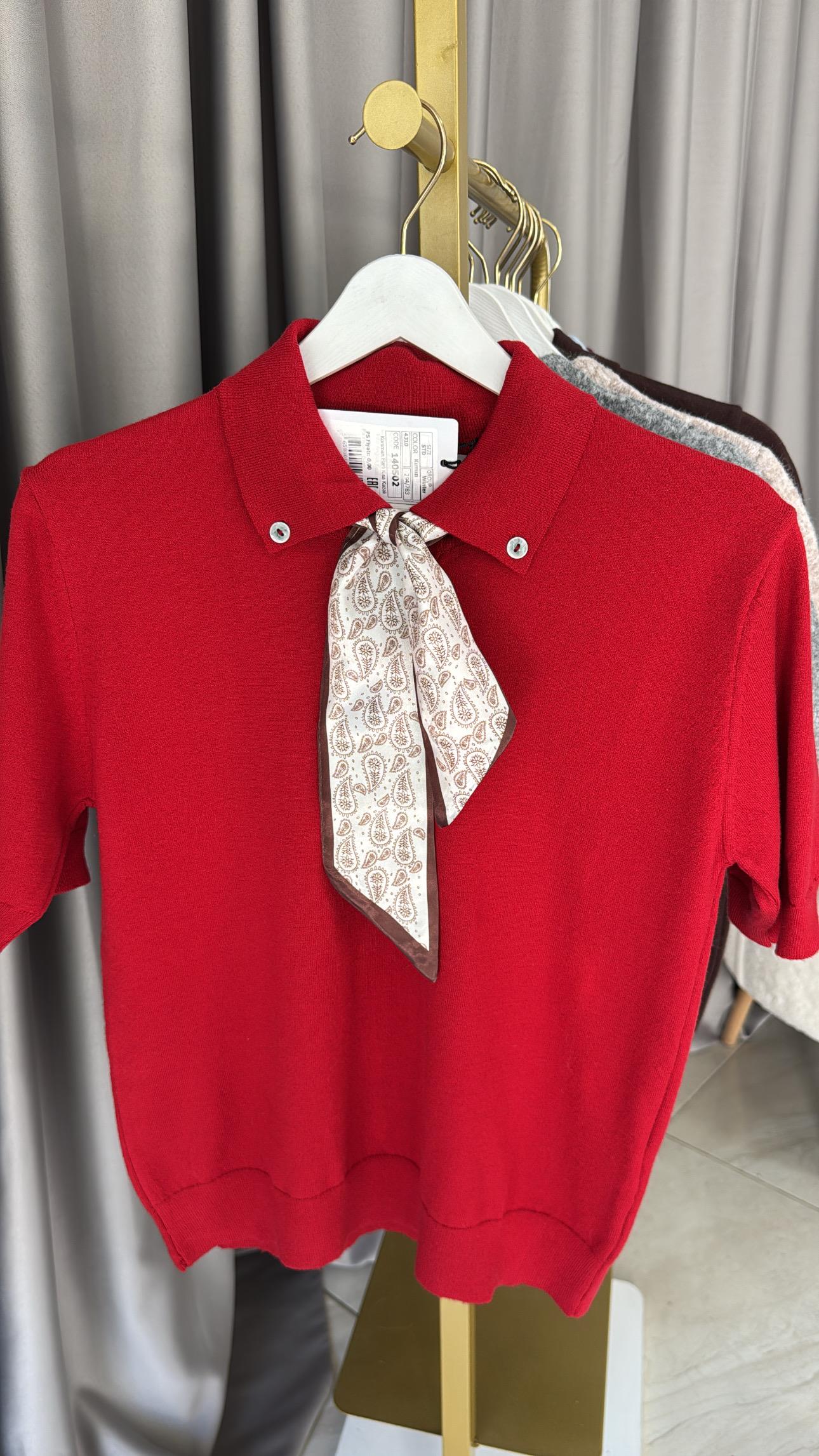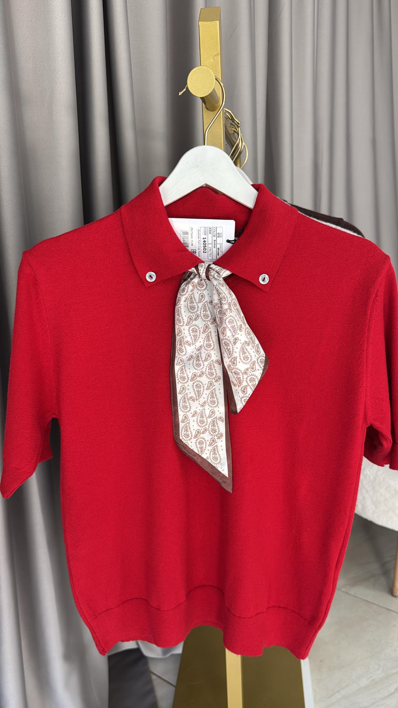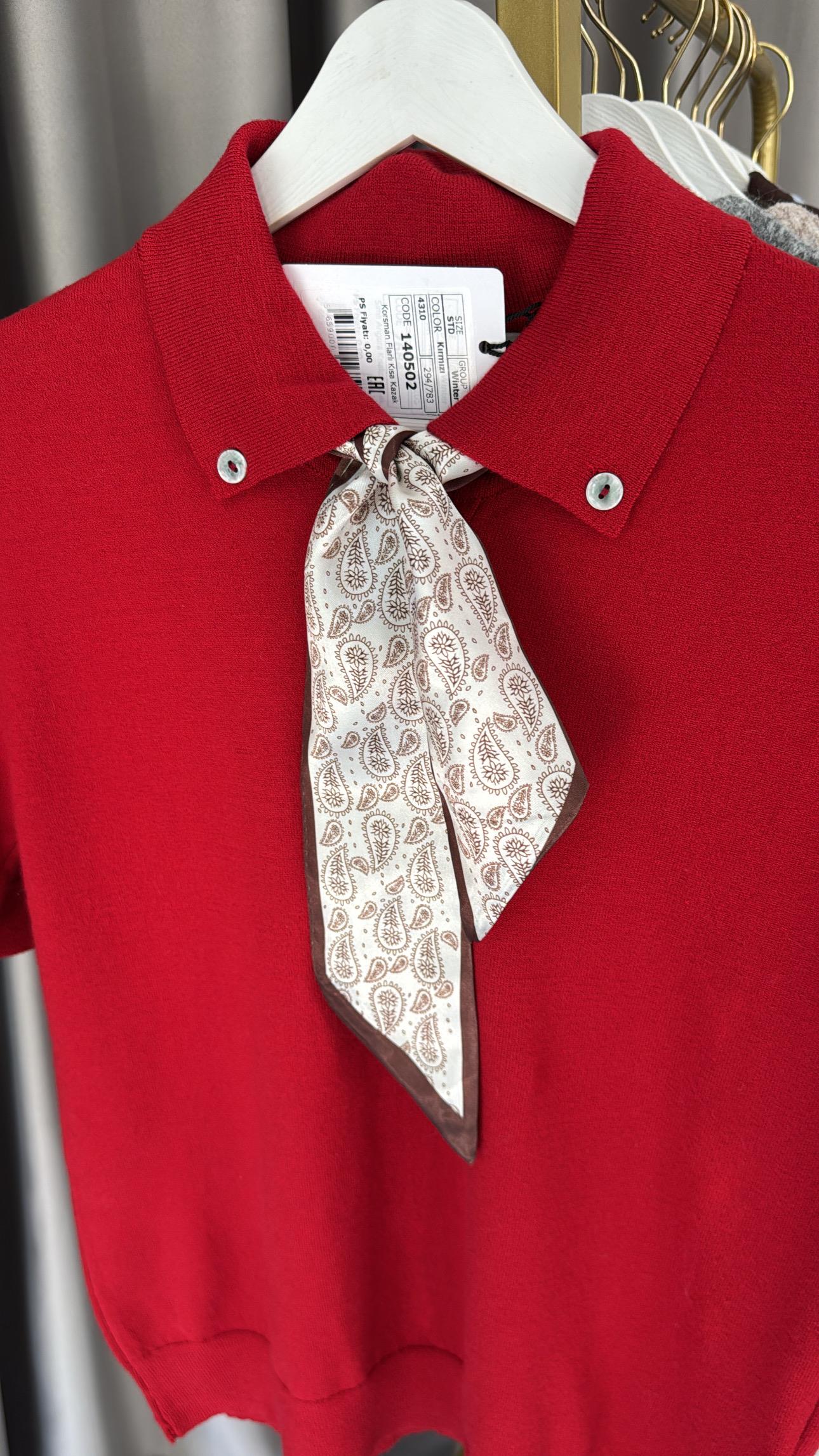 Premium Polo Yaka Fularlı Kırmızı Triko