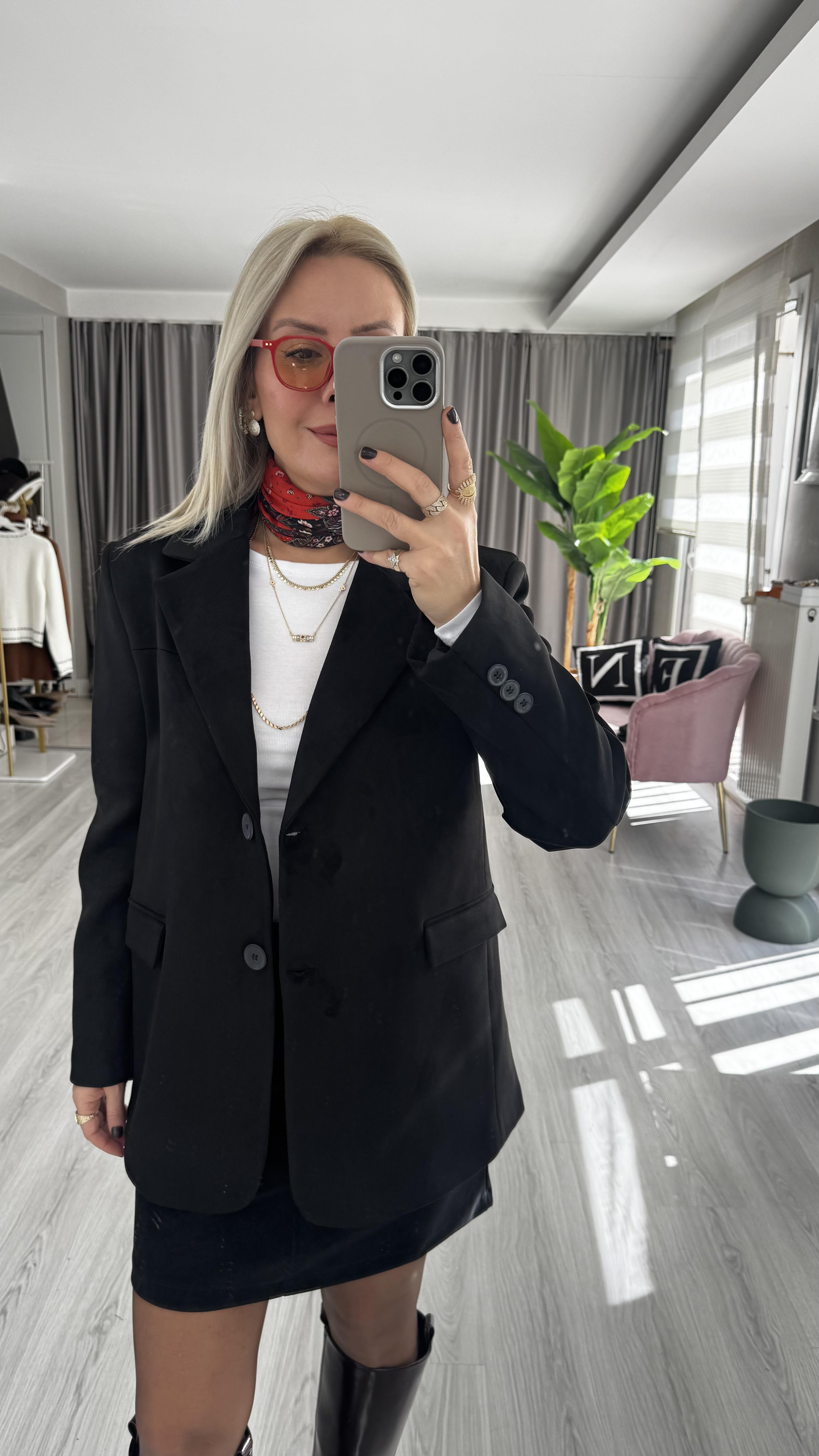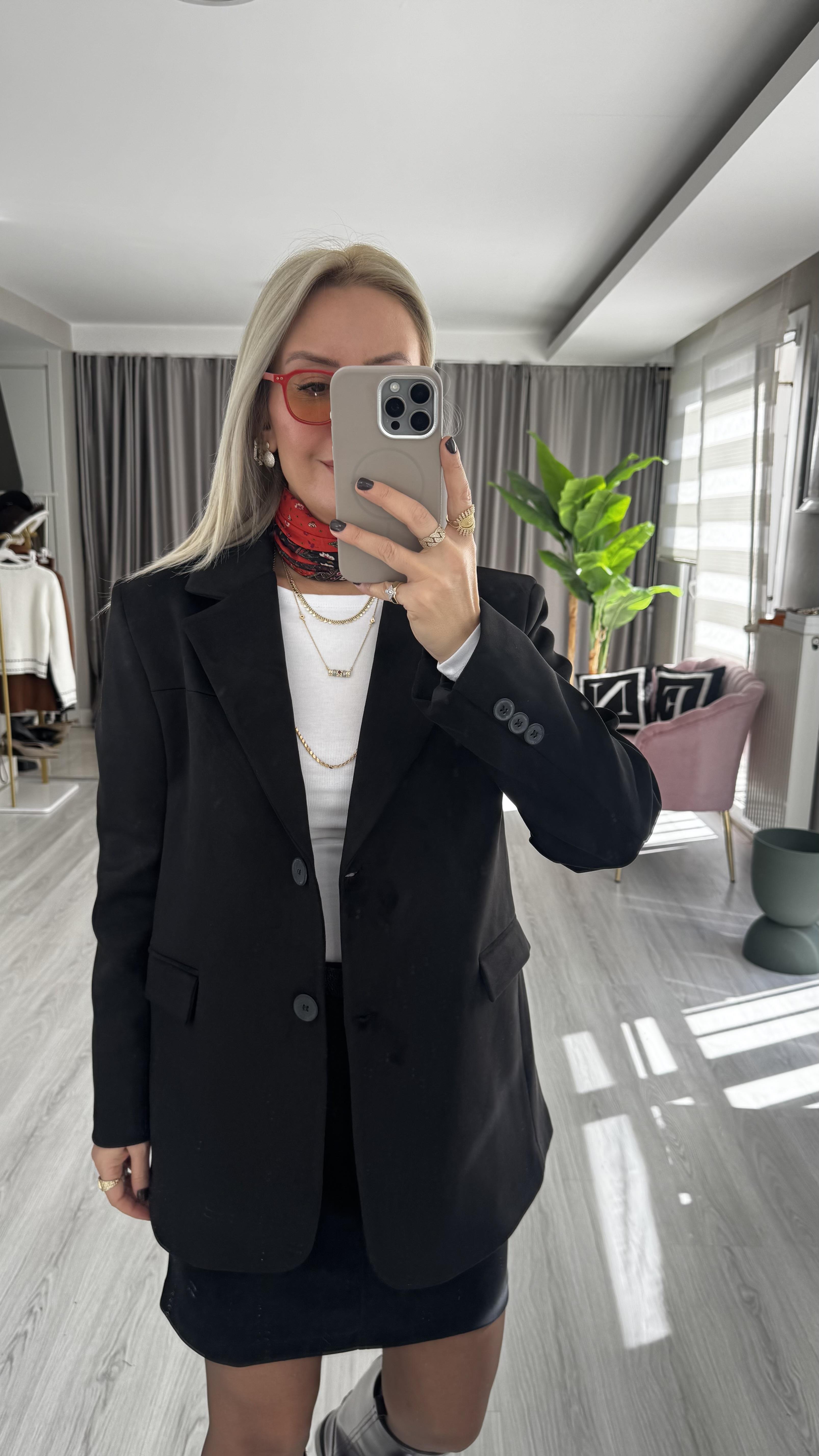 Premium Seri 2 Düğmeli Siyah Süet Ceket