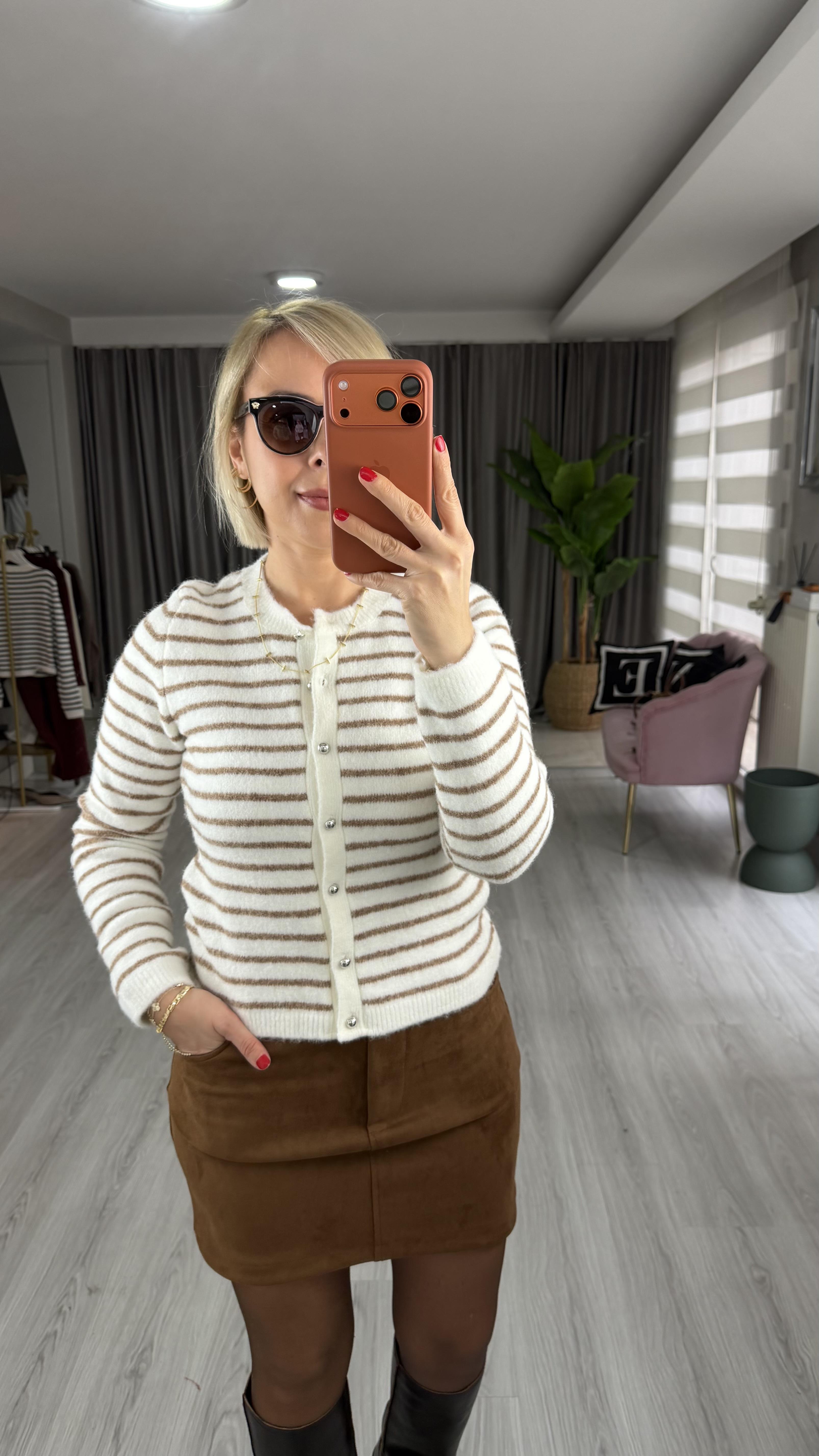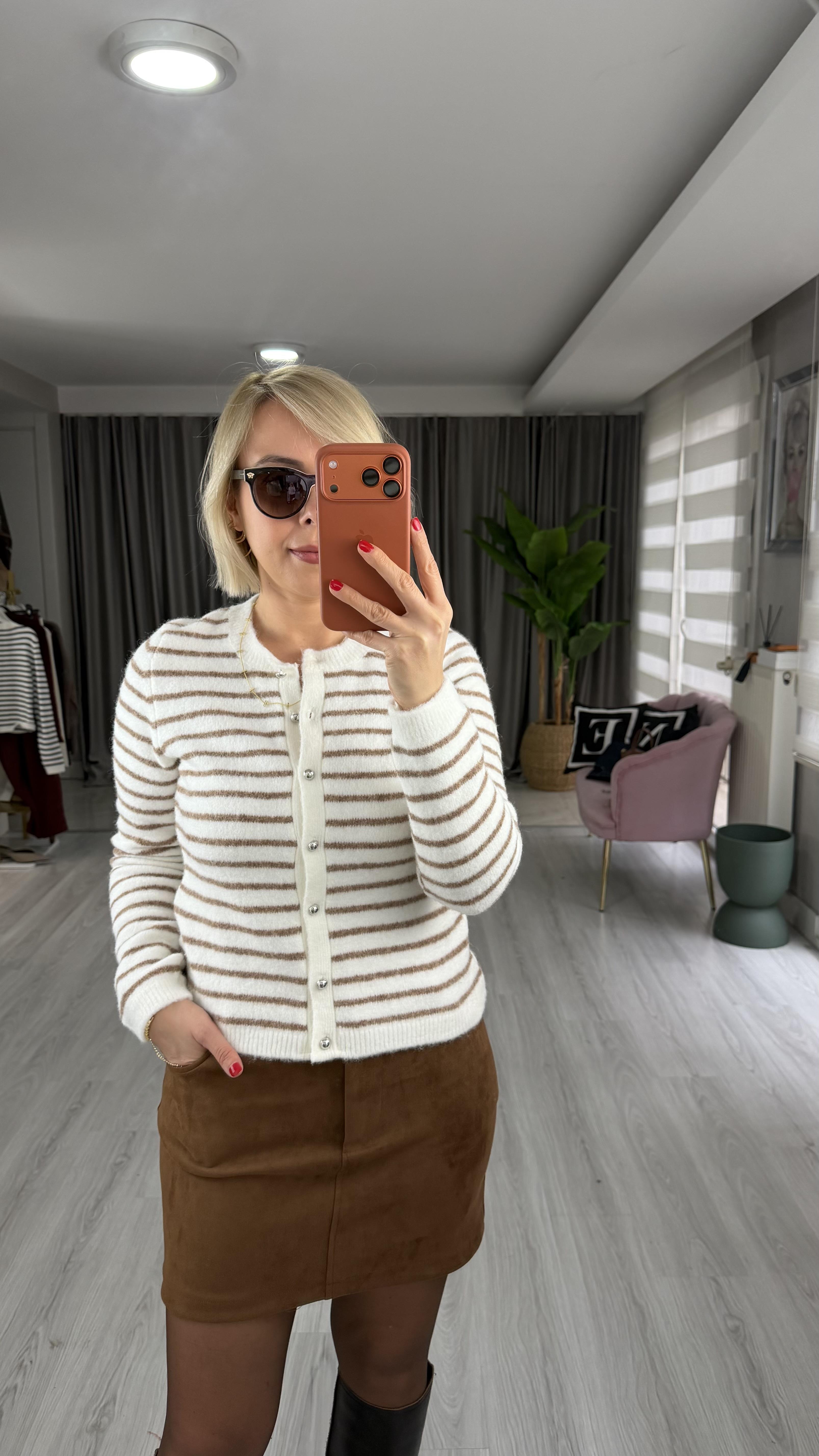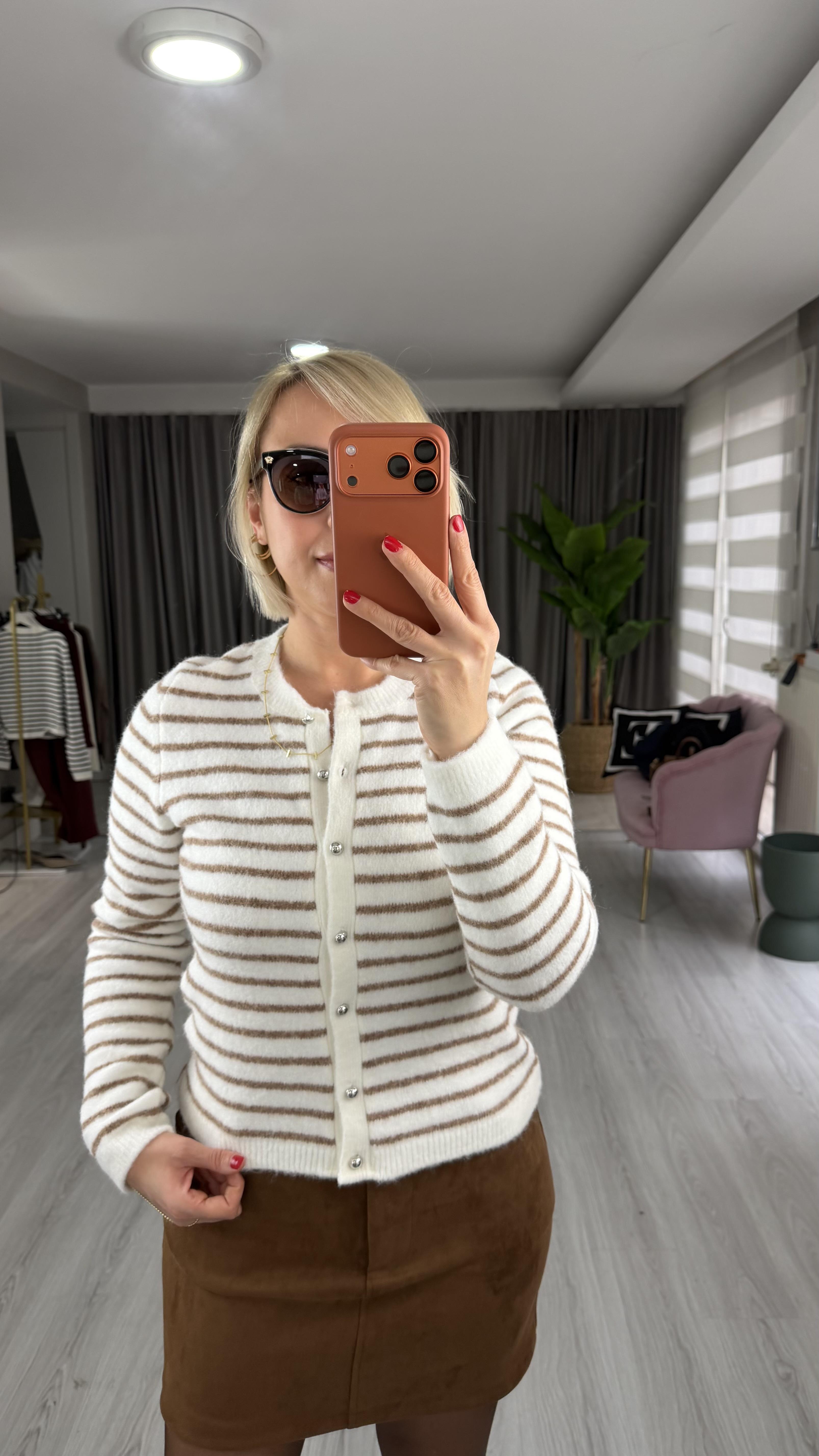 Silver Düğmeli Ekru Bej Yumoş Triko Hırka
