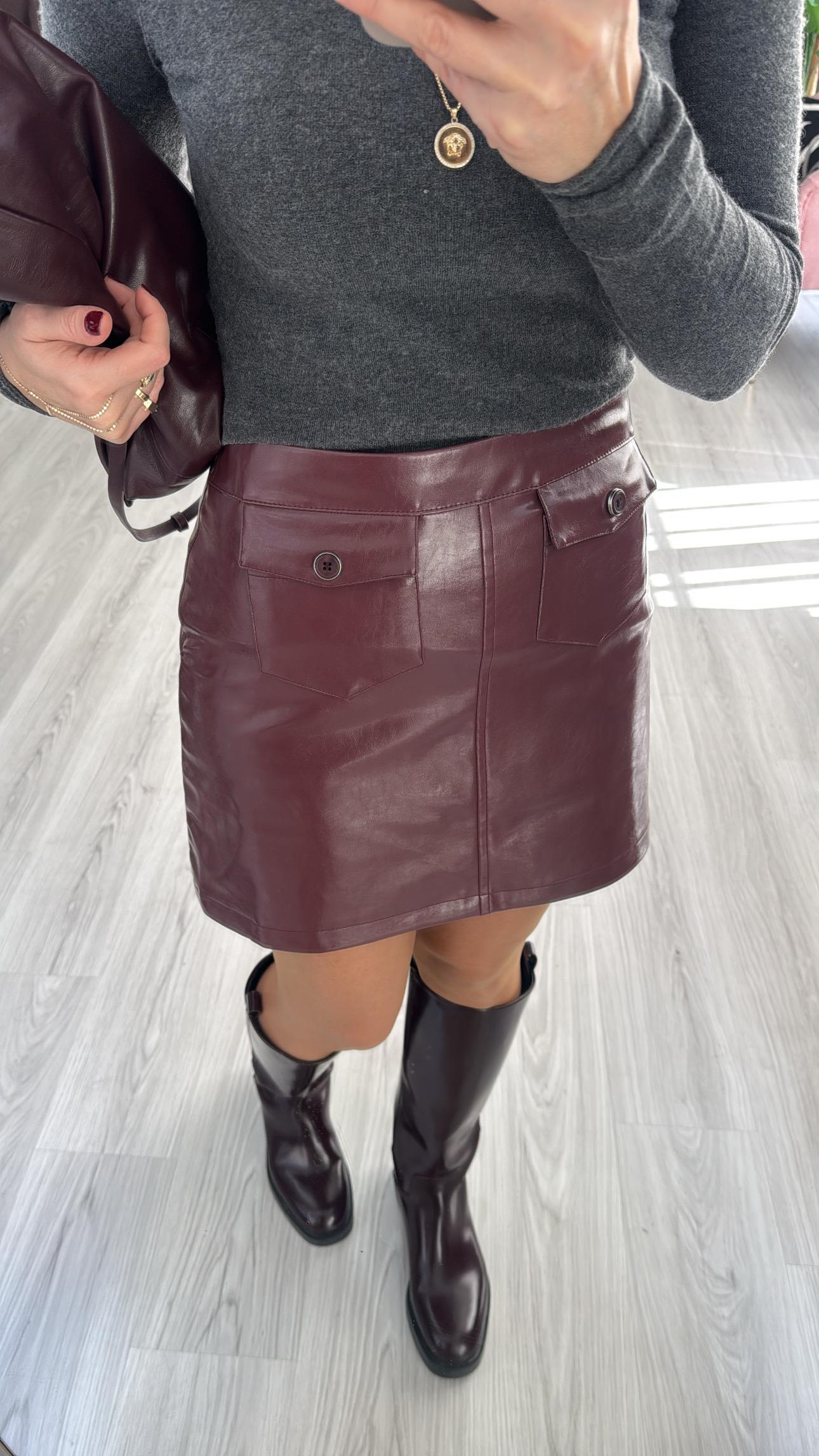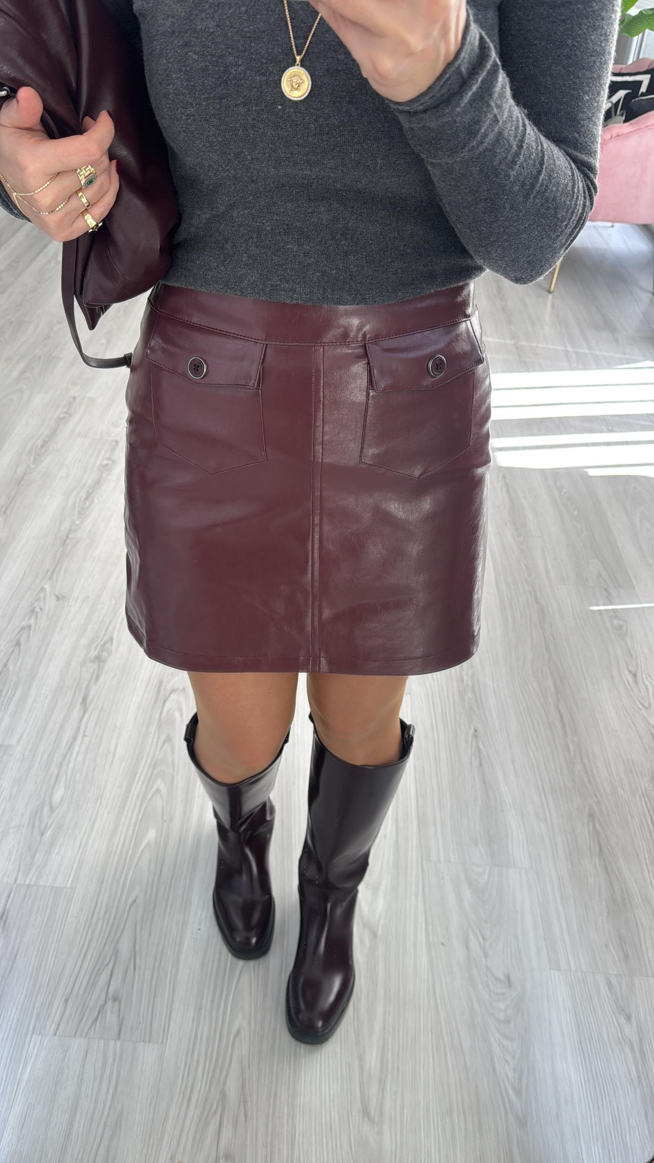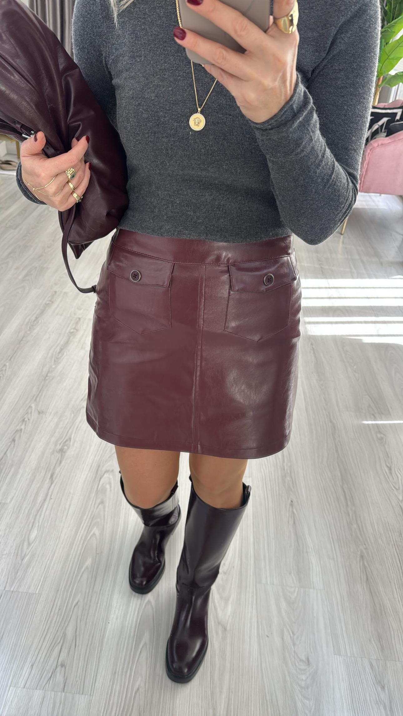 Süs Cep Detaylı Yağ Yeşili Deri Etek