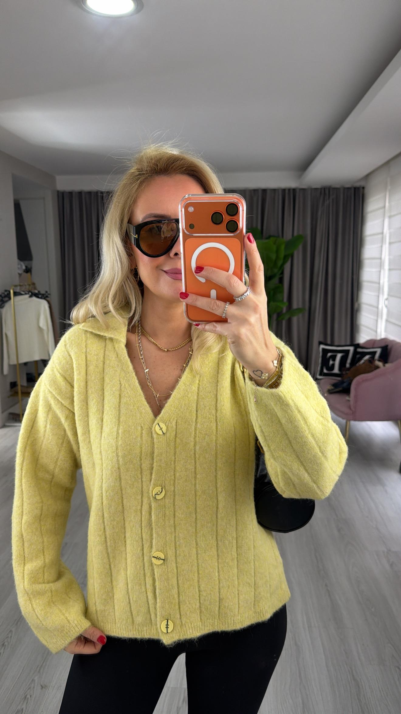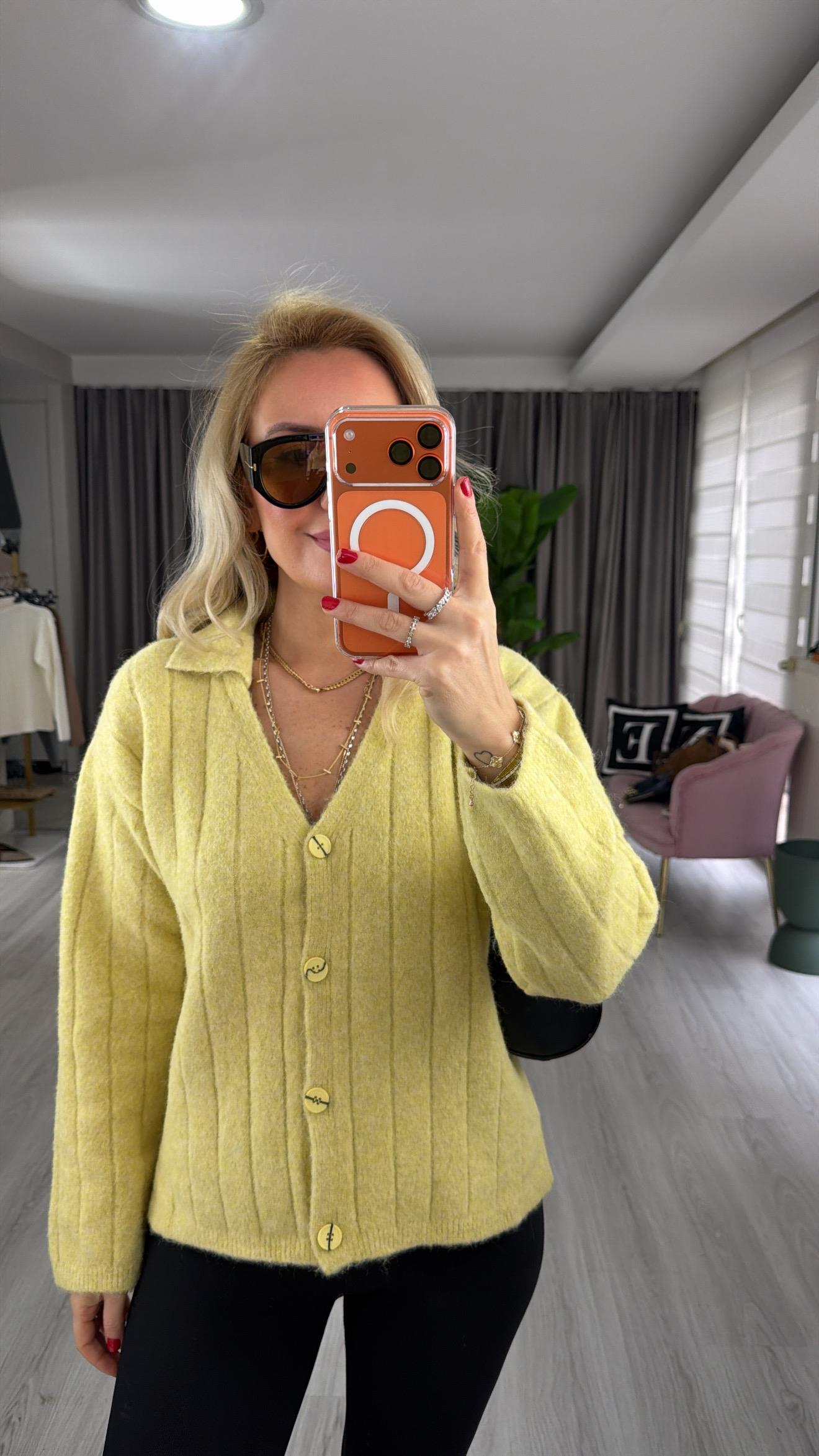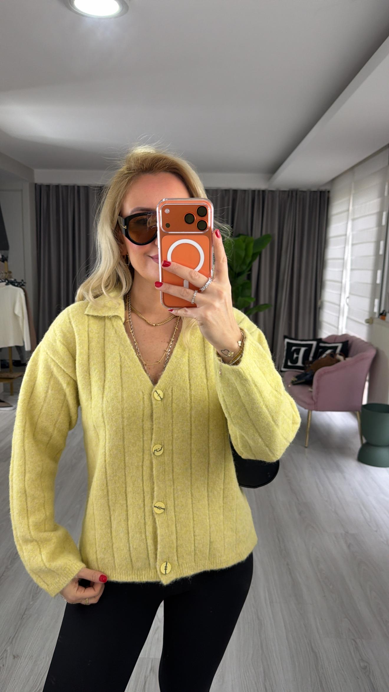 V Yaka Sarı Yumoş Hırka