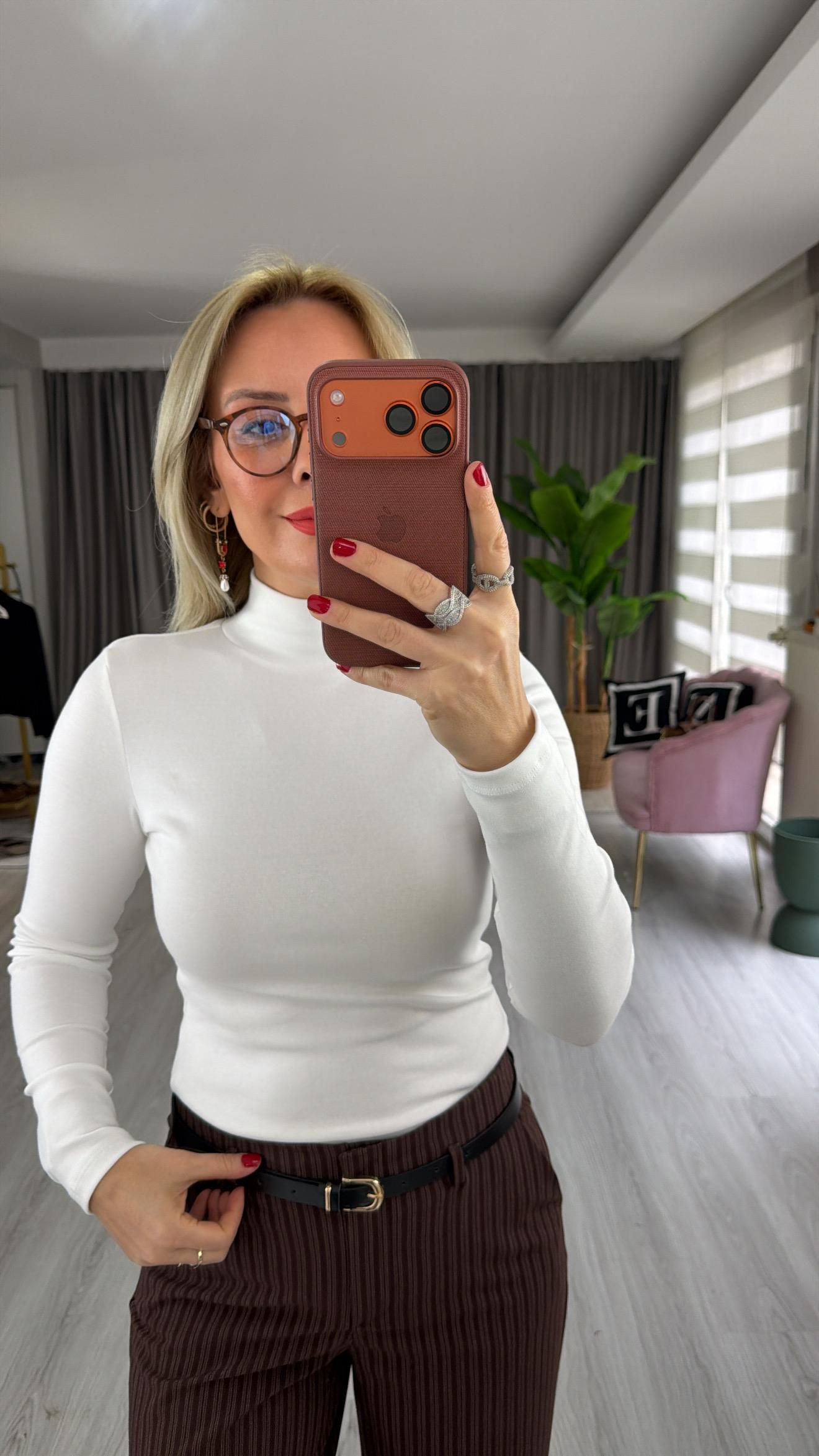 Yarım Balıkçı Yaka Modal Pamuklu Ekru Bluz
