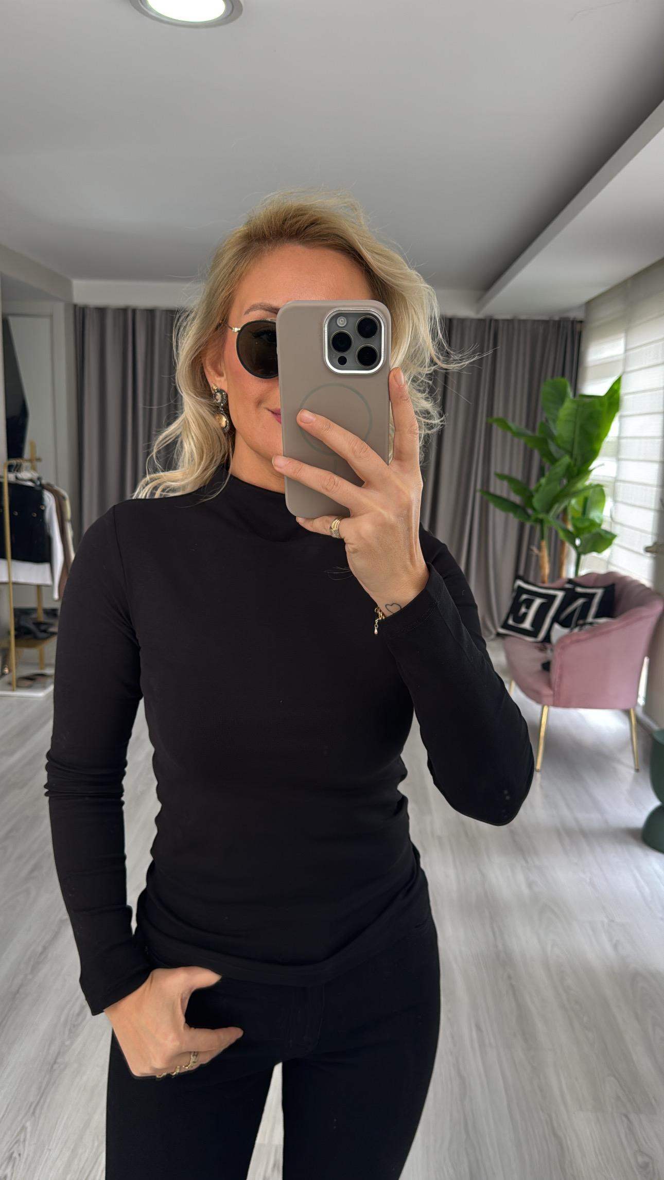 Yarım Balıkçı Yaka Siyah Dilvin Bluz