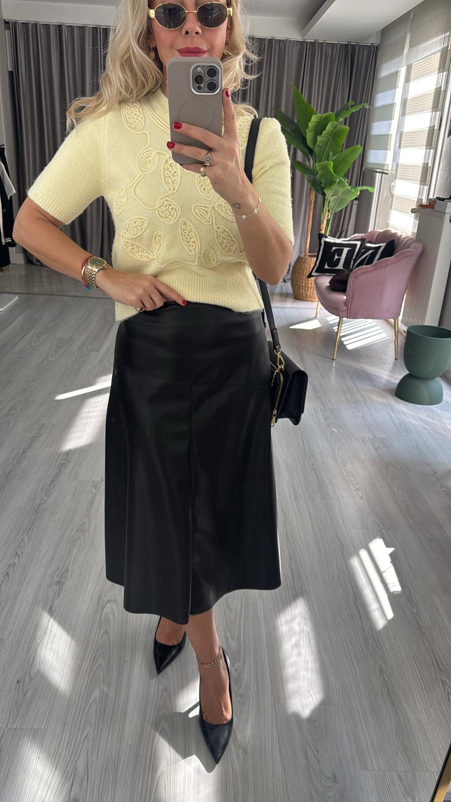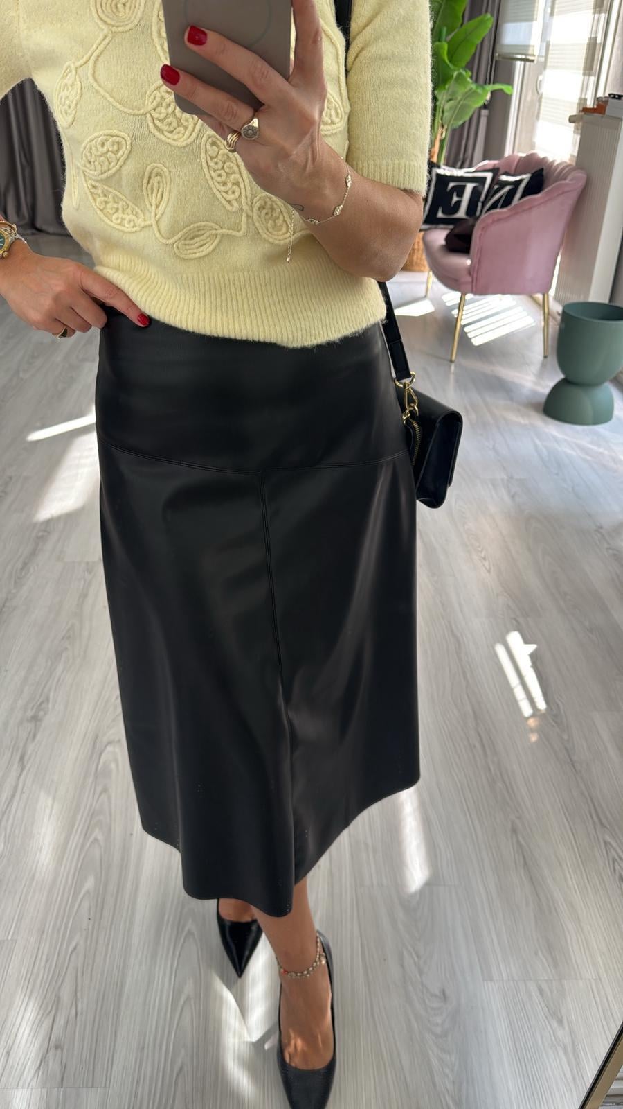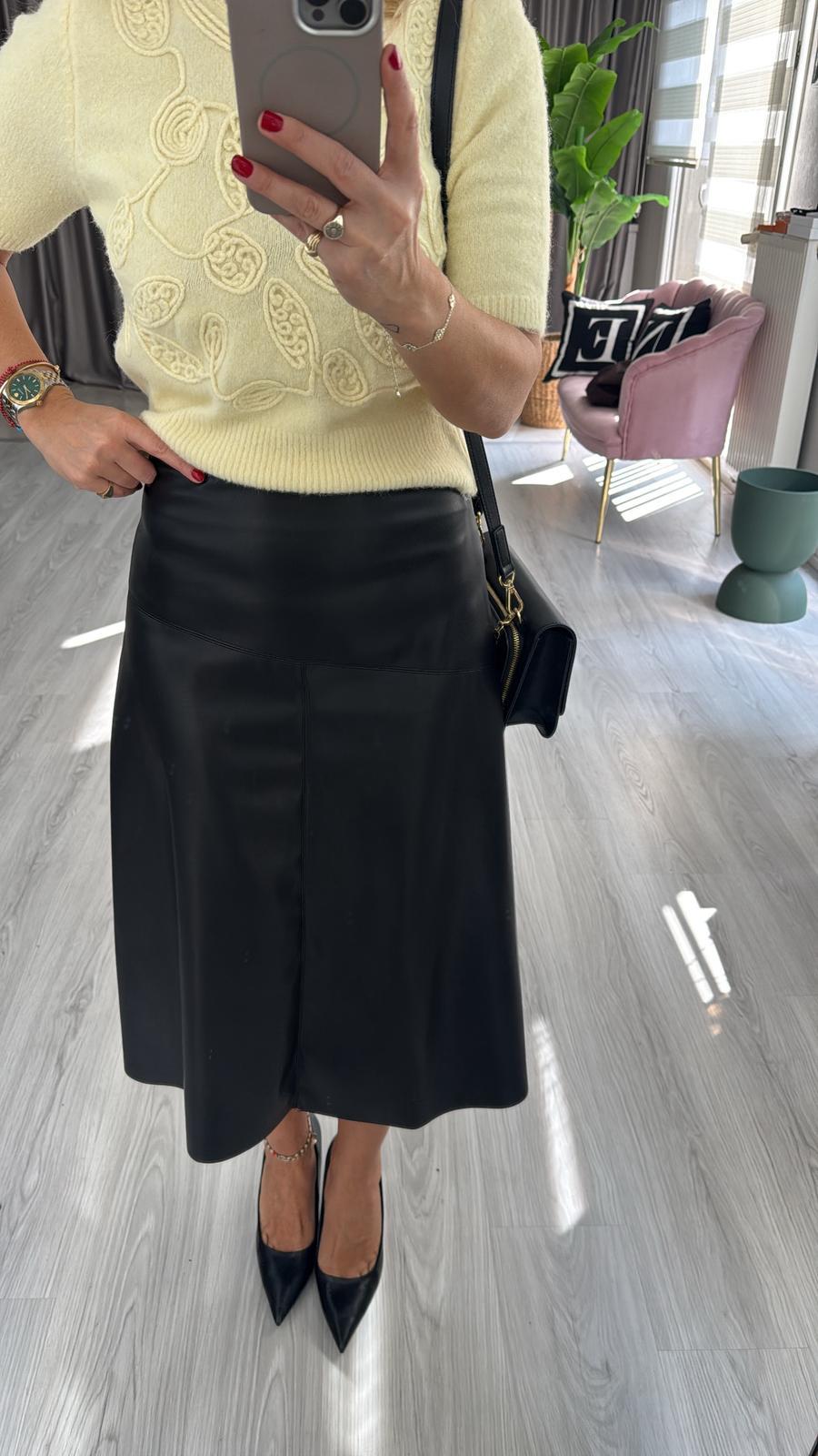 Yumuşacık Siyah Midi Boy Deri Etek